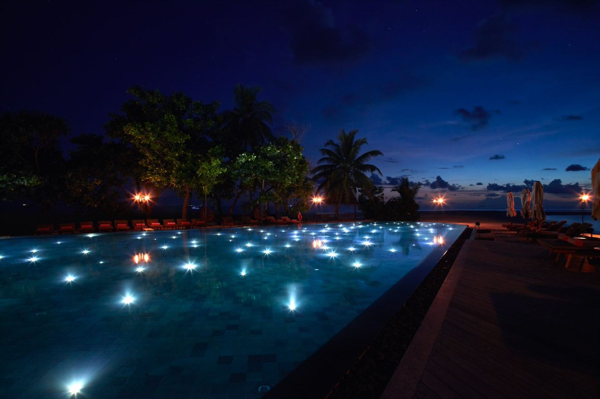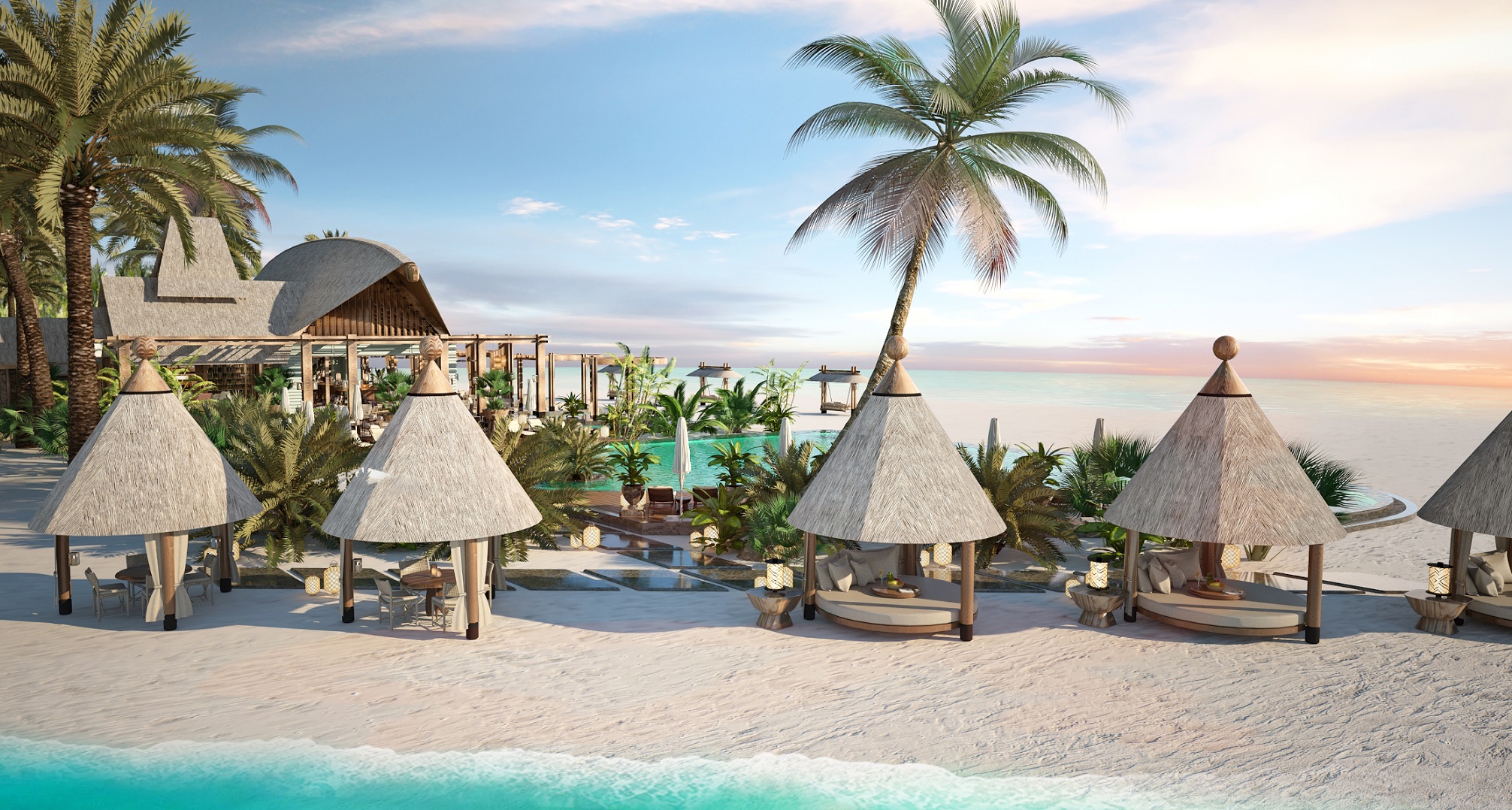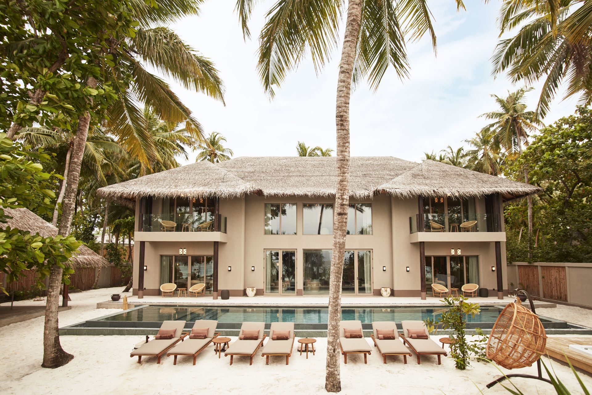 Площа внутрішніх приміщень складає 108 кв.м, загальна – 680 кв.м. Розкішна вілла з великим басейном складається зі спальні з великим ліжком, зоною відпочинку, туалетним столиком та робочою зоною, ванної кімнати зі спа-зручностями та ексклюзивним туалетним приладдям, окремого туалету. Поруч із басейном знаходиться мебльована тераса, пляж обладнаний шезлонгами. Пляжна вілла має панорамний вид на океан і приватний сад. Гостям доступні послуги камердинера та дворецького. Розміщення: 3 особи.