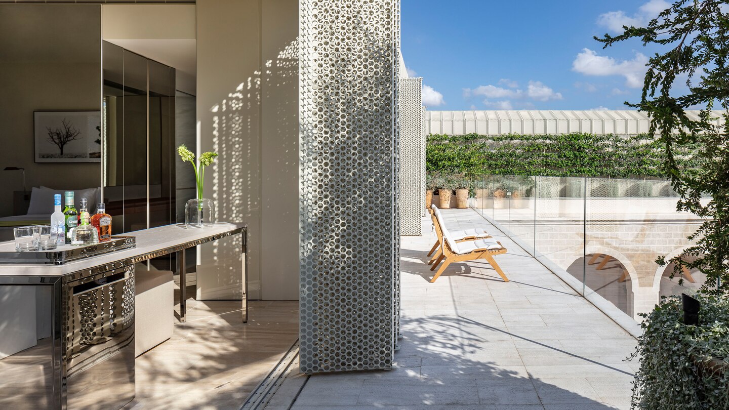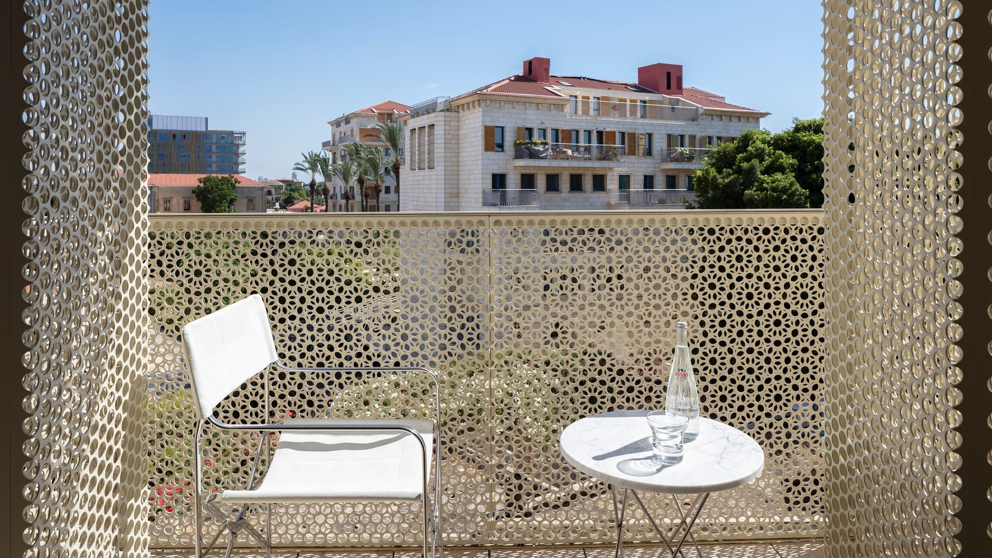 73-95 кв. м. Люкс розташований на новому поверсі історичного крила будівлі готелю і складається з спальні з Super King ліжком, робочою зоною і дзеркалом на підлозі, окремої вітальні, лазні з травою з імбирним душем, великим балконом з шиферами, з яких відкривається панорамний вид на Тель-Авів - Яффо і Середземномор\'я. Додаткове ліжко і дитяче ліжко доступні. Місце: 2 дорослих і 1 дитина.