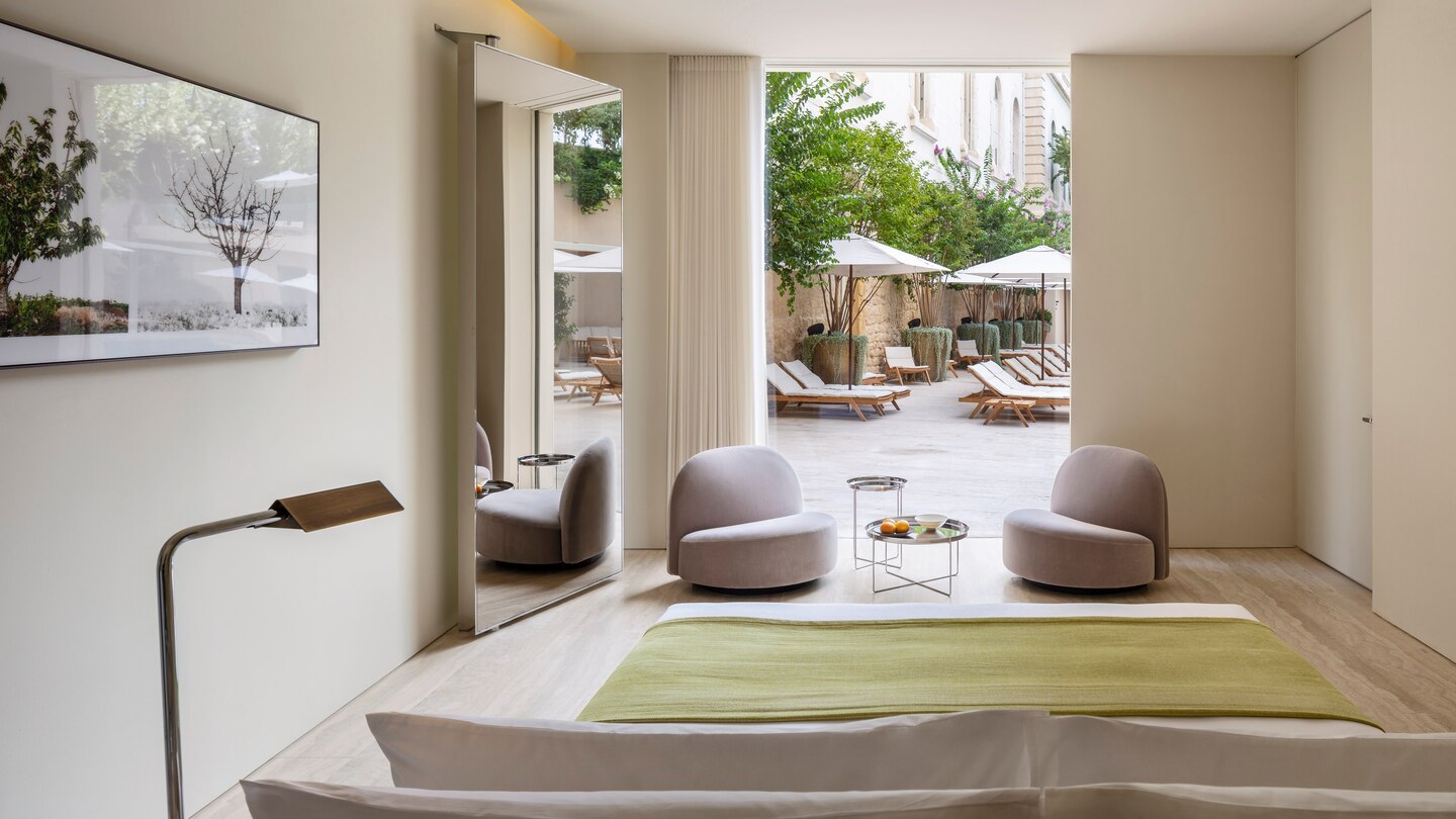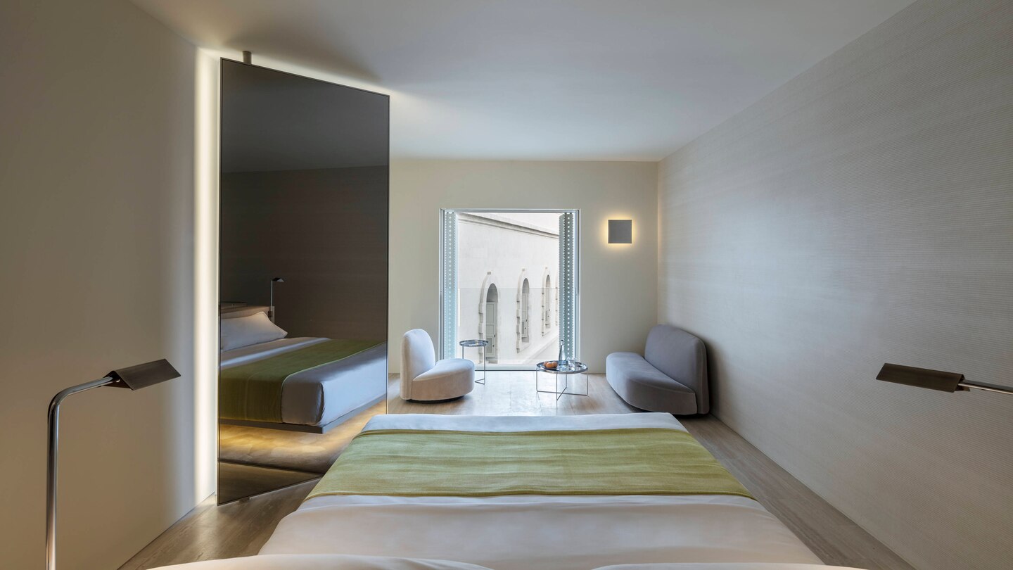 26 - 37 кв.м. Кількість в історичному крилі має високу стелю і розм\'якшується ліжком розміру короля, диваном, робочим столом, має величезне дзеркало на підлозі. Ванна кімната з трав\'яного мармуру оснащена імбирним душем. Номер прикрашений мистецтвом сучасного мистецтва, вікна відкривають погляд на інтер\'єрний суд. Місце: 2 дорослих і 1 дитина.
