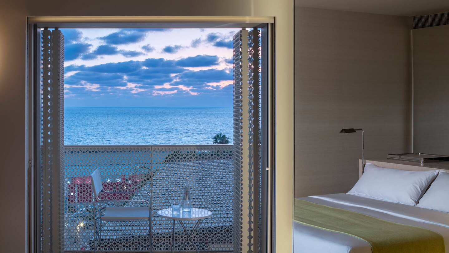 31 кв. м Номер в сучасному крилі будівлі готелю складається з ліжка " King " , зона відпочинку, робочий стіл і велика дзеркала в підлозі, ванна кімната з трав\'яної маморою, оснащена бісквітним душем. Номер оформлений сучасним мистецтвом, а балкон відкривається захоплюючий вид на середземноморське море. Місце: 2 дорослих і 1 дитина.