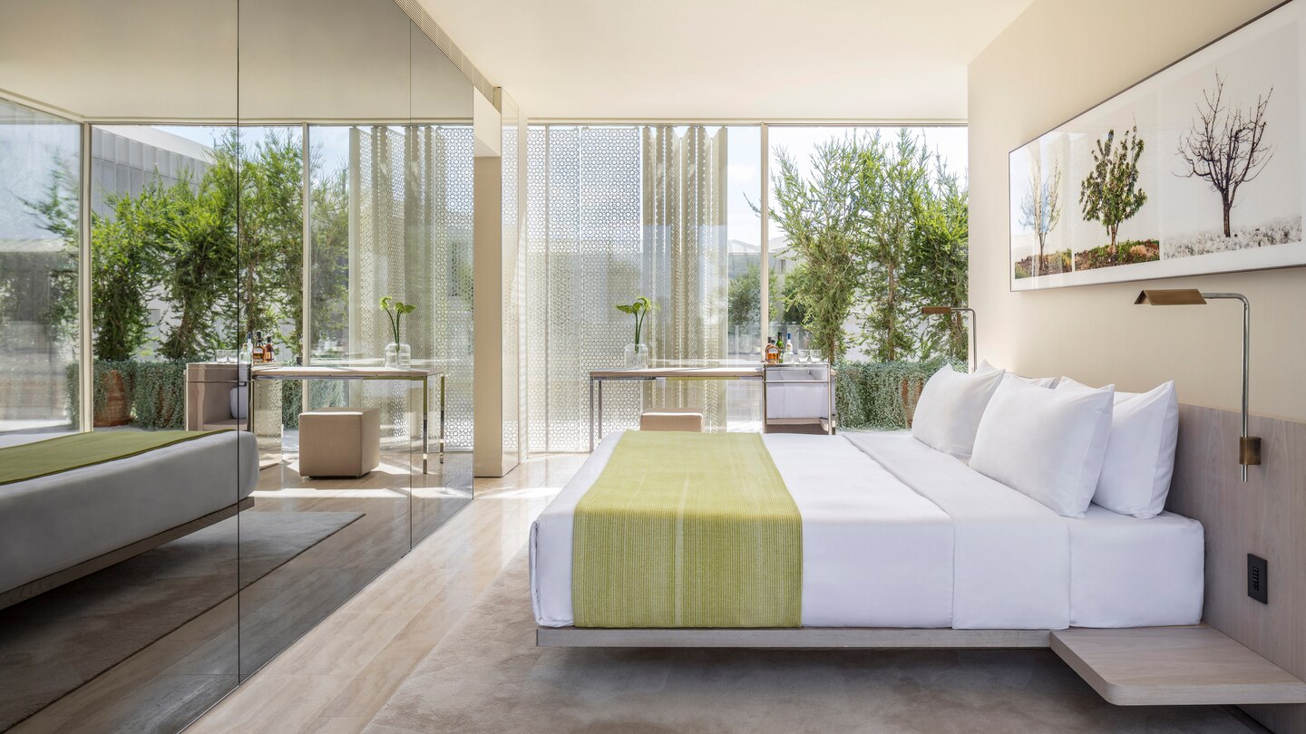 31 кв. м Номер в сучасному крилі будівлі готелю складається з " King " ліжко або два Super twin ліжка, зона відпочинку, робочий стіл і величезне дзеркало в підлозі, симпатична ванна з травним мармуром, обладнаний дощовим душем, балконом з видом на місто Yaffo, внутрішній дворик або басейн. Місце: 2 дорослих і 1 дитина.