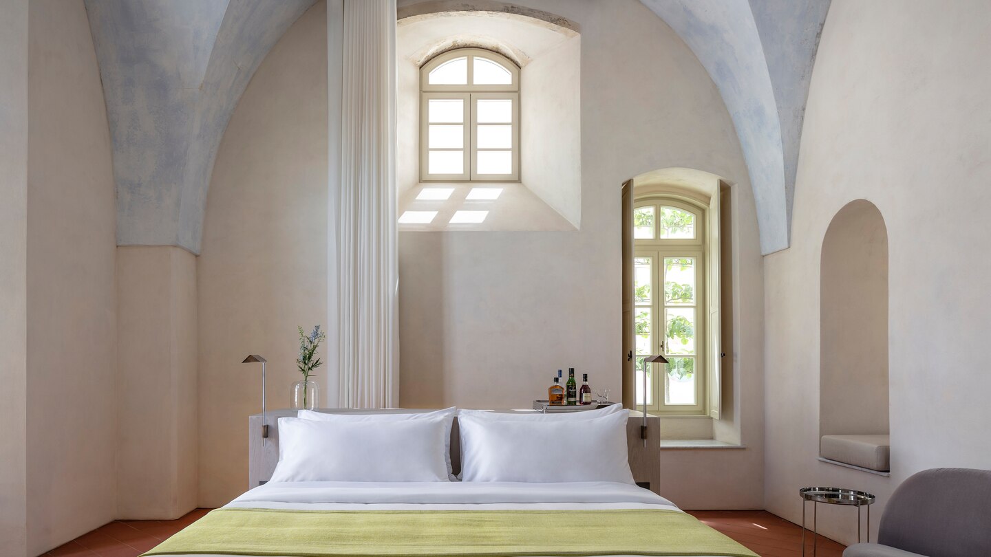 Архітектори та дизайнери приїдуть до ідеї надихання інноваційних інновацій в житті старого міста Yaffo, що поєднує чудові форми будівлі та сучасну естетичну естетику. Для цього прості номери в The Jaffa, готель Luxury Collection був обладнаний меблями, спеціально розробленими для проекту і нагадуванням стінок османської культури, підлоги були виготовлені з красивого натурального вапняного кардису і оснащені найсучаснішими технологіями.