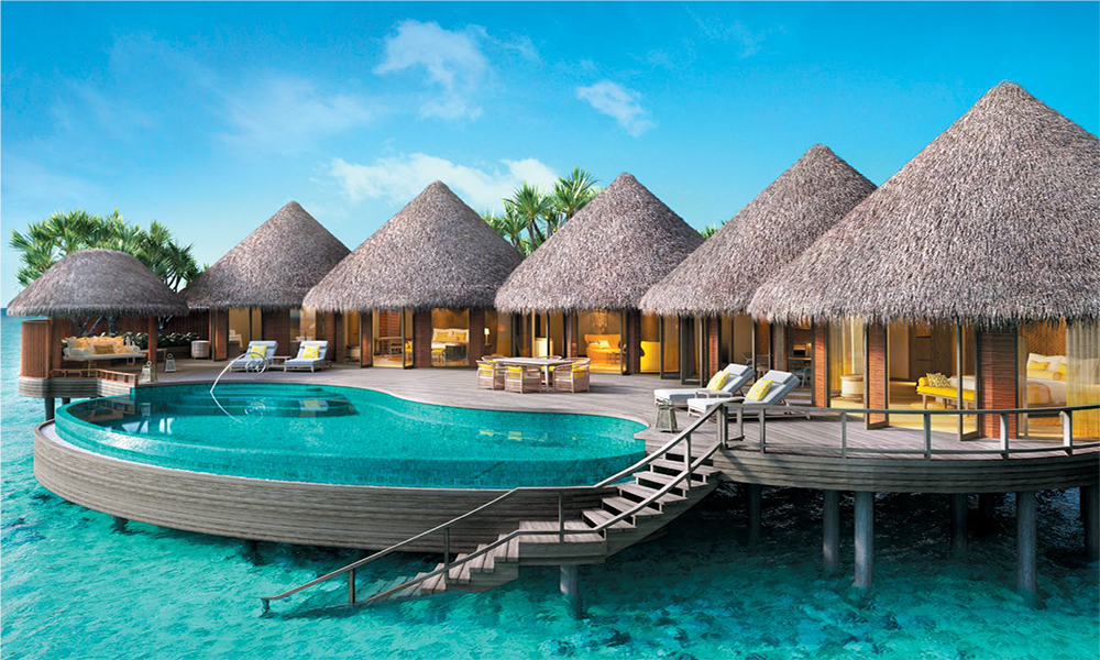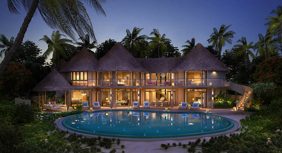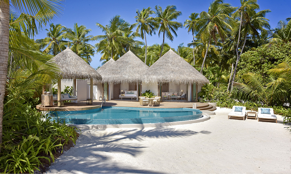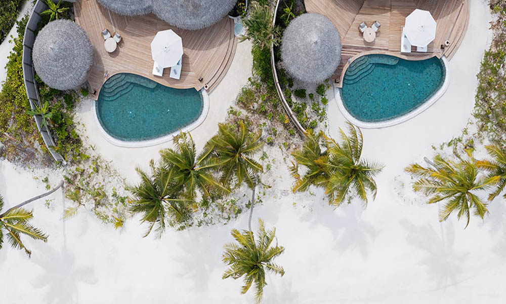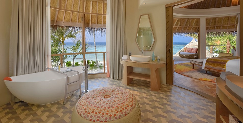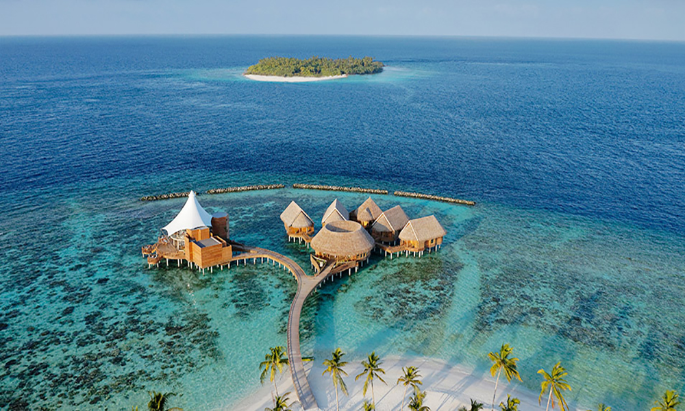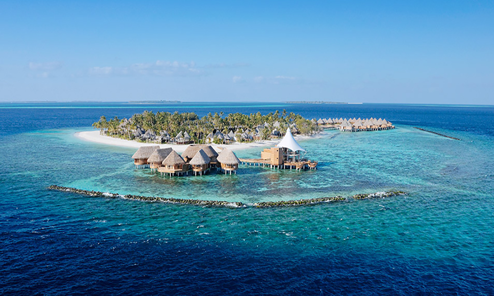 Острів невеликий – лише 250 м у діаметрі. Всі пляжі острова вкриті білим кораловим піском. З будь-якої вілли є вільний вихід у море (для водних вілл) або на пляж.