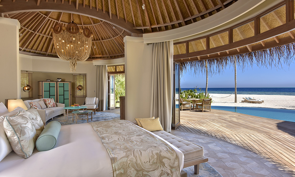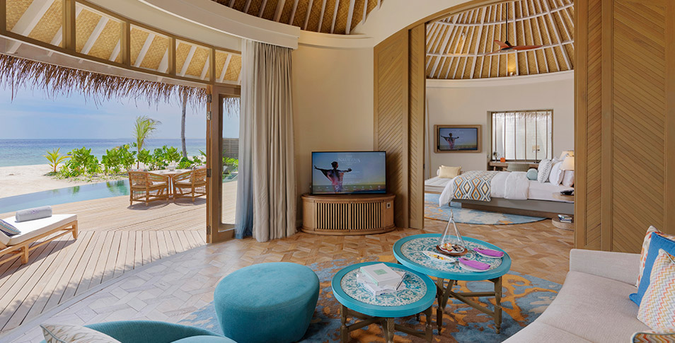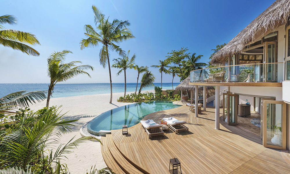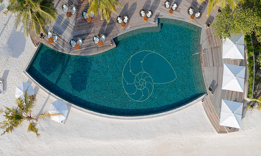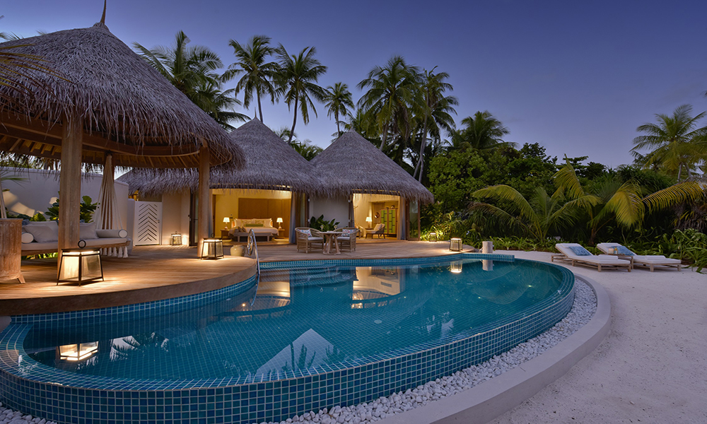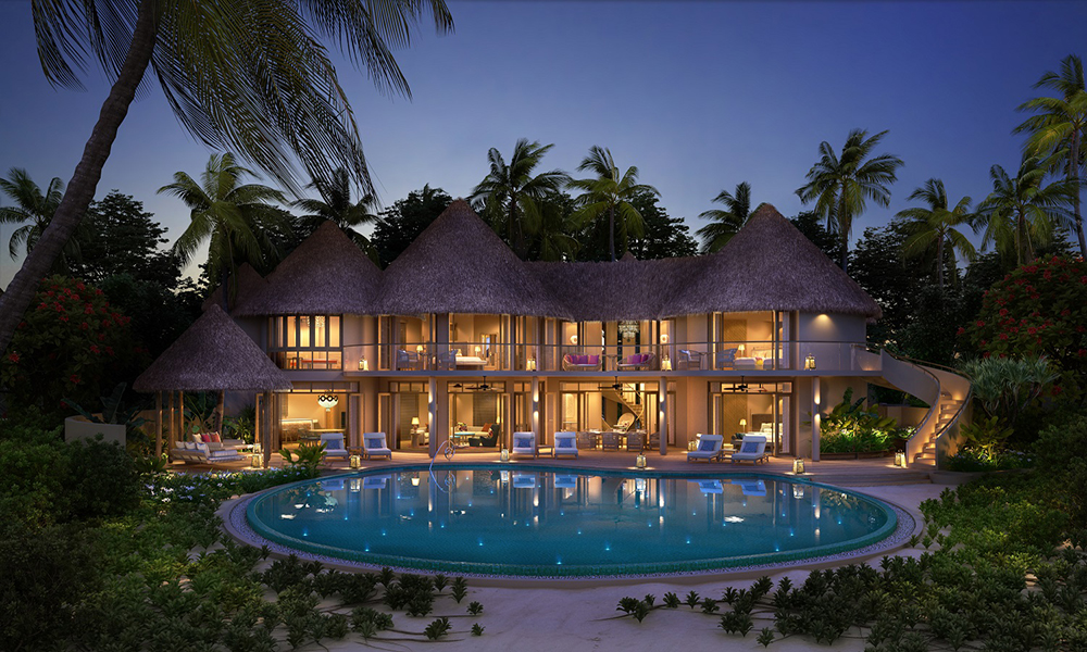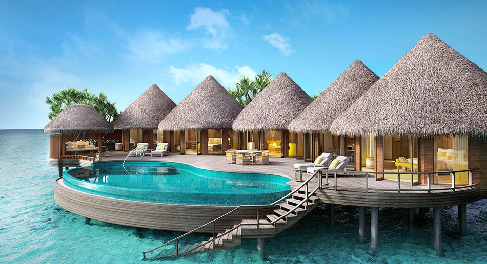 Острів невеликий – лише 250 м у діаметрі. Всі пляжі острова вкриті білим кораловим піском. З будь-якої вілли є вільний вихід у море (для водних вілл) або на пляж.