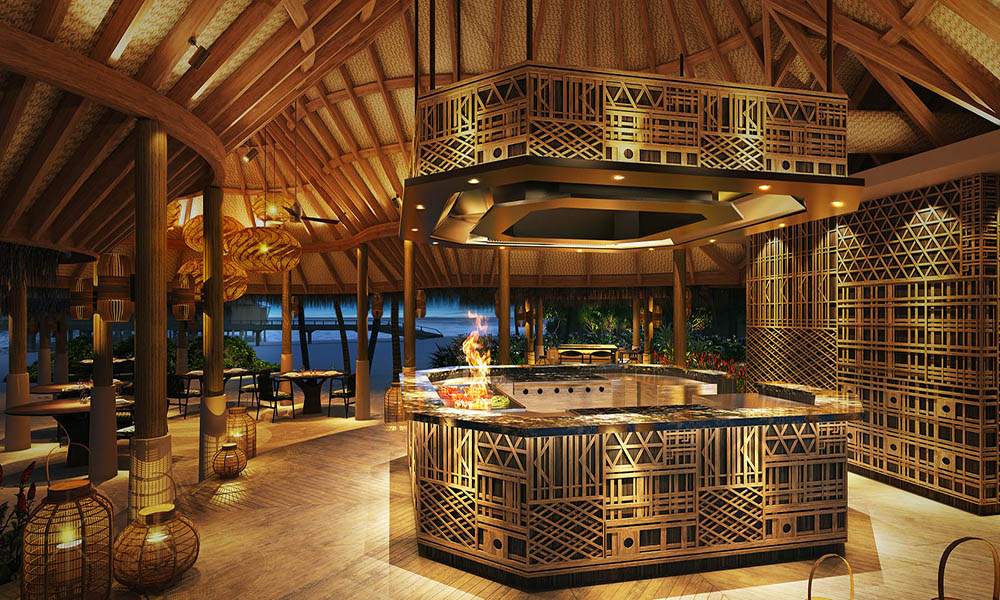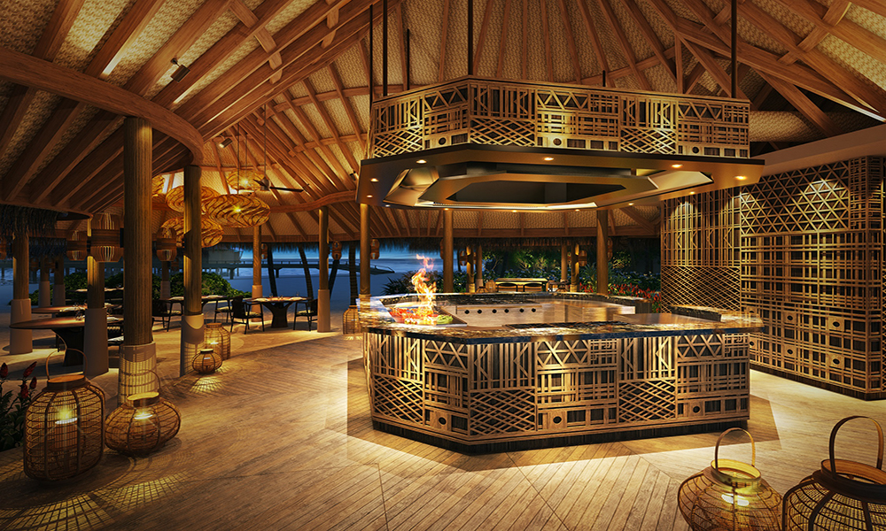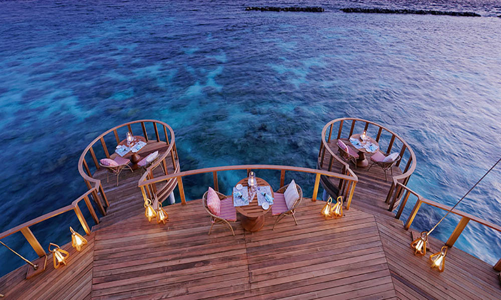 Ресторан Zeytoun. Він розташований у просторому бунгало над лагуною острова. З будь-якого місця ресторану відкривається чудовий вид на блакитні води океану. Ресторан пропонує страви грецької, близькосхідної та турецької кухонь.
