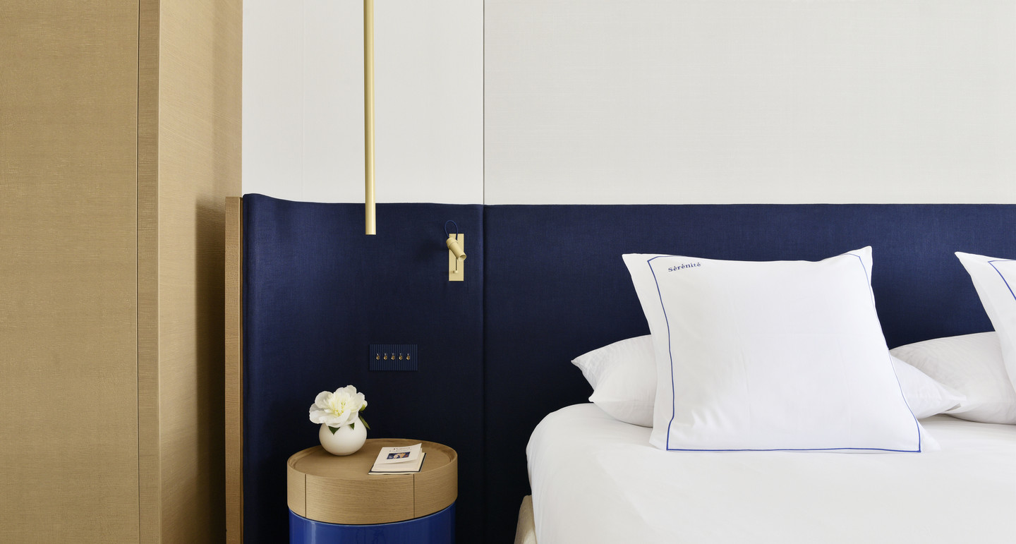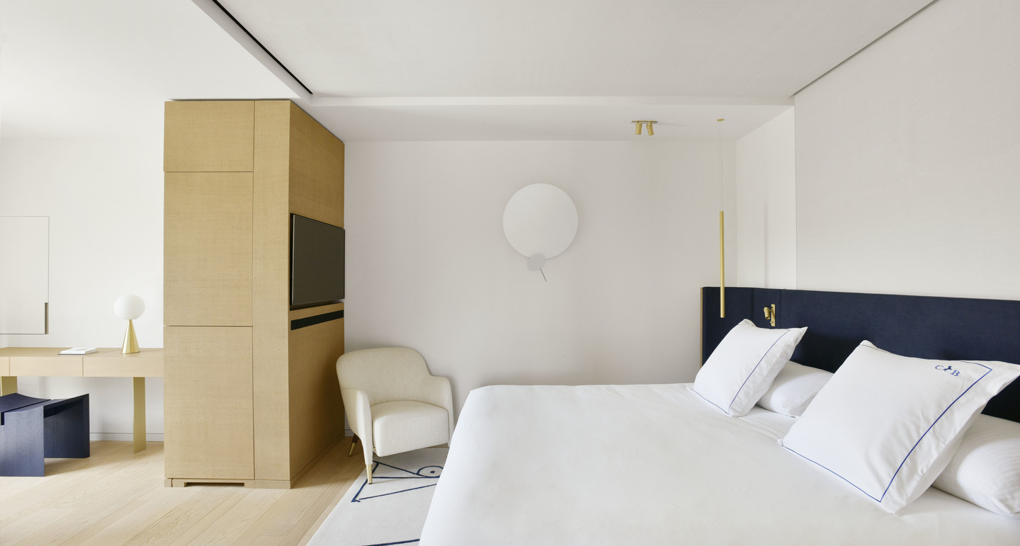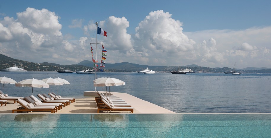 Висока якість обслуговування в готелі Cheval Blanc St-Tropez залишається незмінною з моменту відкриття далекого 1936-го року. Будівля, спроектована архітектором Жаном-Мішелем Вільмоттом, поєднує в собі поетичну гармонію кольору слонової кістки та кремової палітри відтінків, що освітлюються променями сонця. Дизайн номерів виконаний в авторському стилі архітектора та художника Роджера Капрона, поєднуючи в собі теракотові, сині, блакитні та кремові тони. Готель не раз ставав улюбленим місцем відпочинку представників богеми, завдяки утихомирюючій обстановці та самотності від міської суєти.