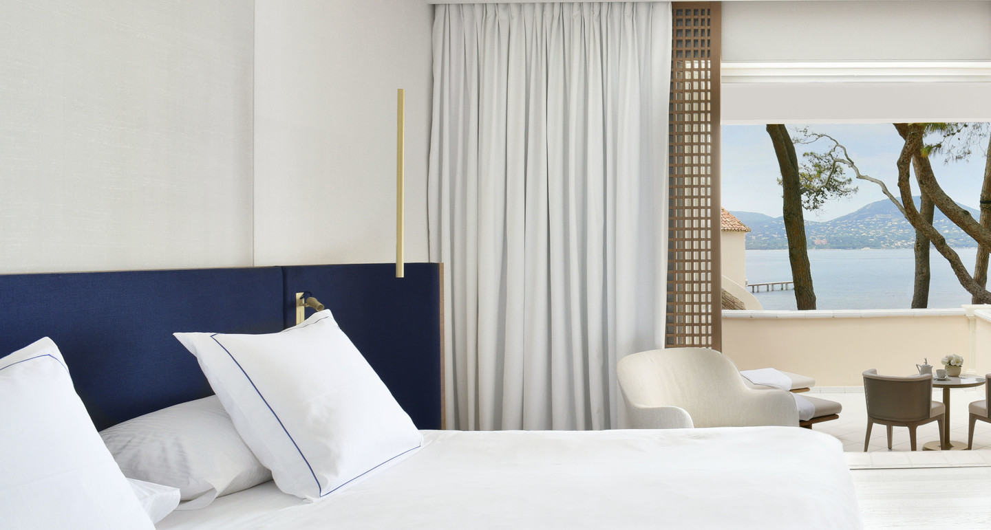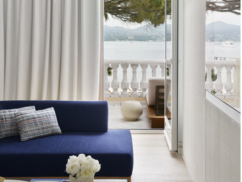 25-30 кв. м. Покращений номер з приватною терасою та видом на затоку Сан-Тропе. У номері є ванна кімната, душова кабіна, туалет, окрема гардеробна та фірмовий аромат готелю від виробника парфумерії Riviera Chic.