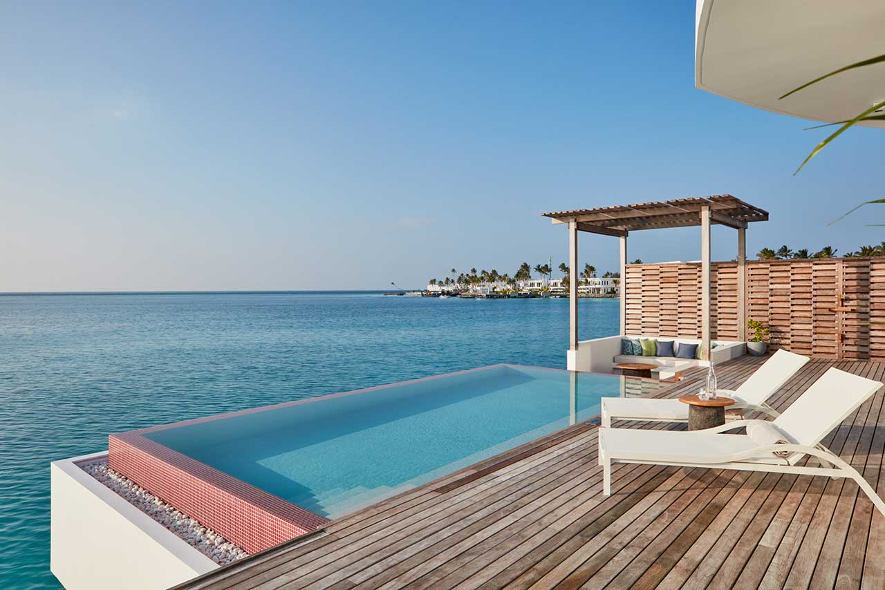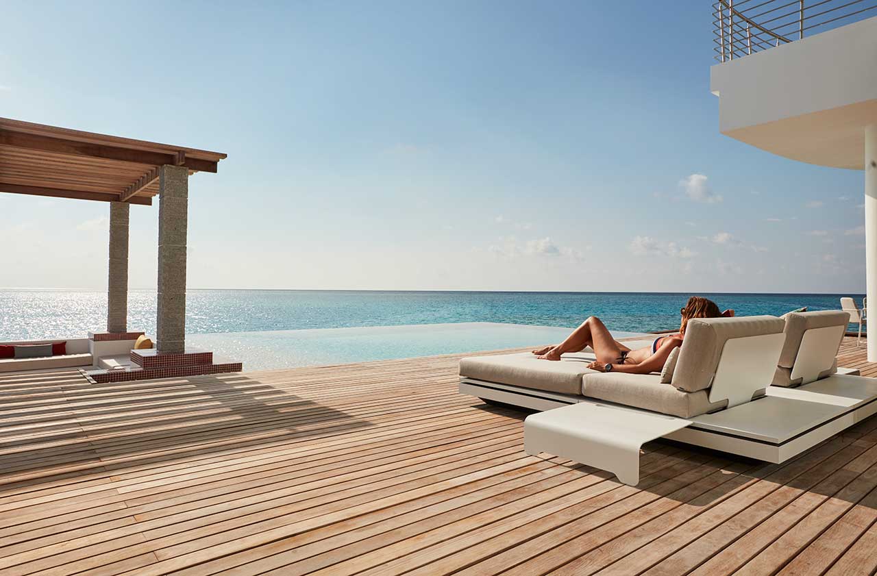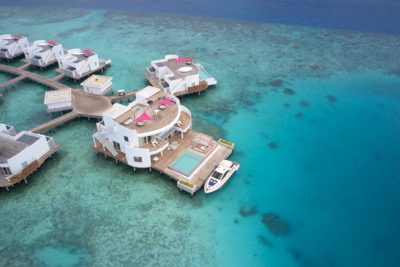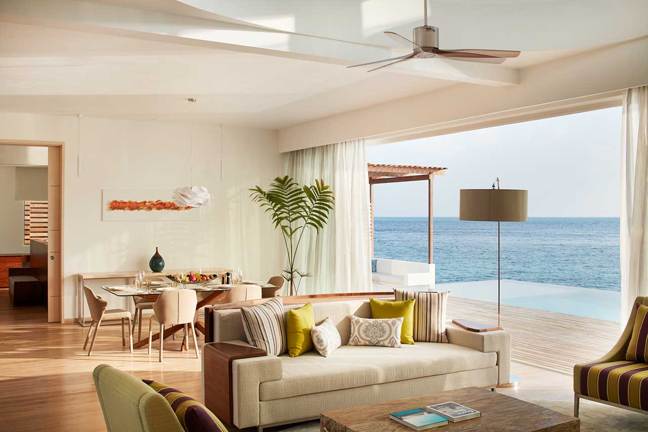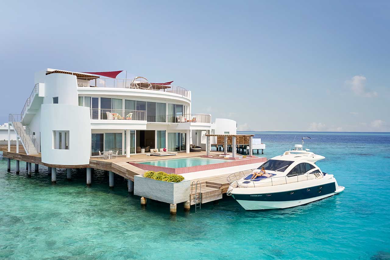 Також можна замовити приватну вечерю, яка сервірується на пірсі, і плавучий сніданок на власній віллі.