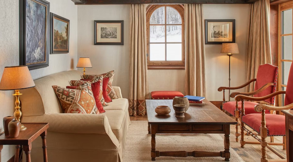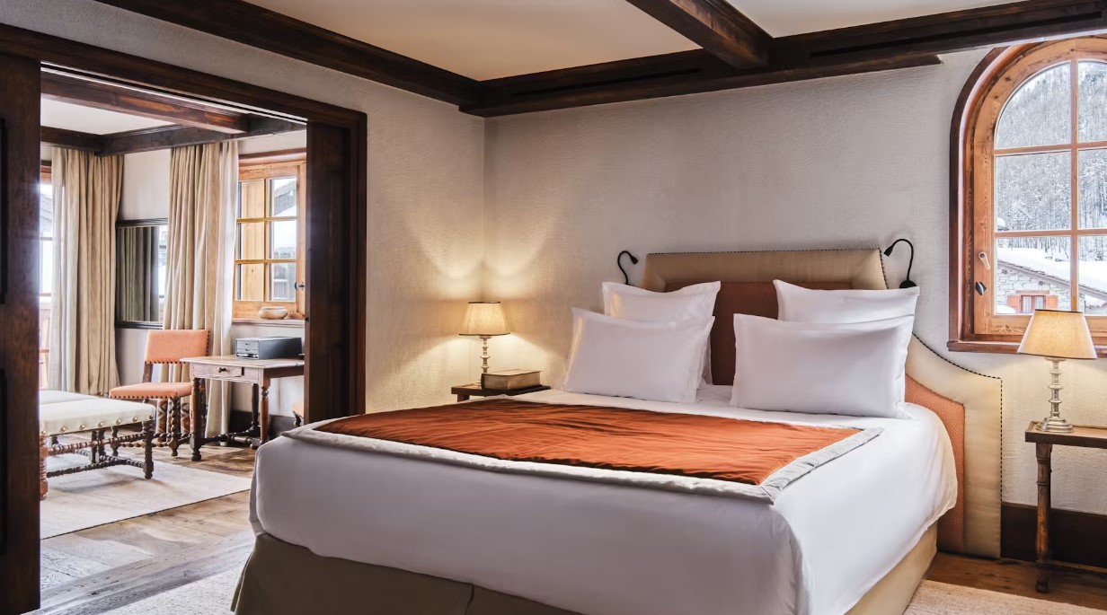 Ласкаво просимо до напівлюксу готелю Airelles Val d'Isère, комфортабельного номера з видом на типові шале гірськолижного курорту. Великий, щоб кожен мав свій простір, а також теплий і затишний, цей люкс є ідеальним гірським притулком для втечі.