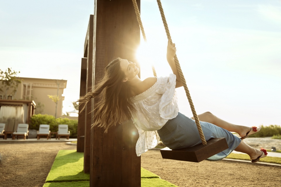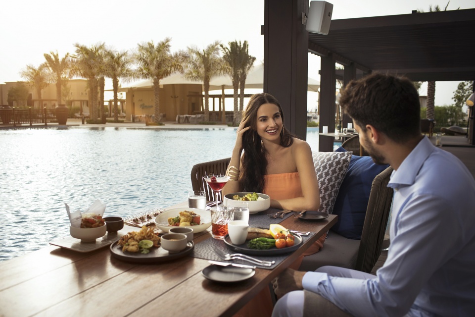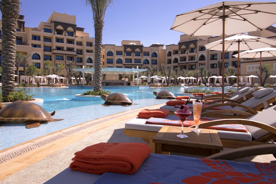 Великий курорт Садіят Rotana Курортний комплекс " Поєднання великої кількості арабської архітектури, східної розкоші та сучасного стилю укладено на піщаному узбережжі Перської затоки, серед білих пісочних долонів. Готель розташований в самому серці вишуканості, арабського кольору і відмінного сервісу.