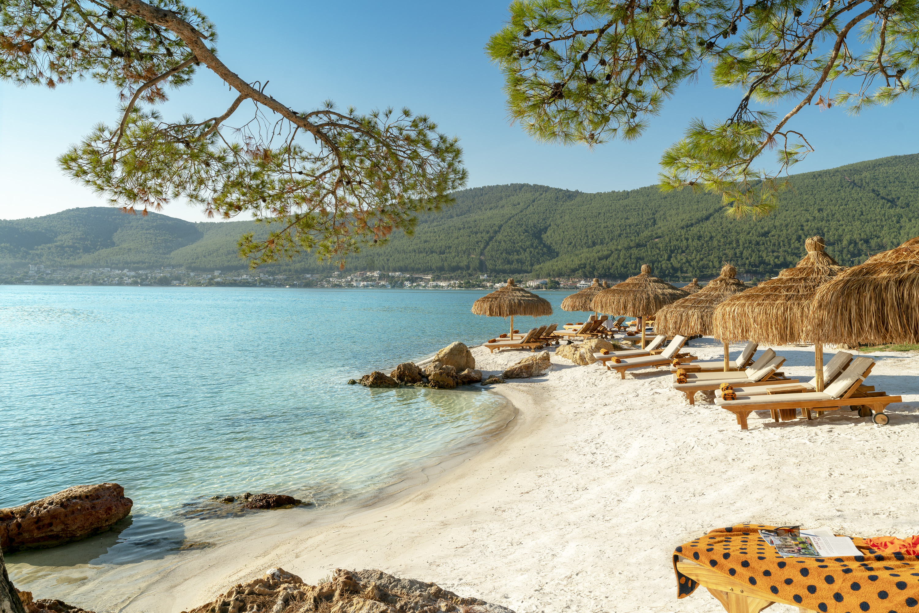 Білий піщаний пляж, що ідеально підходить для відпочинку з дітьми.