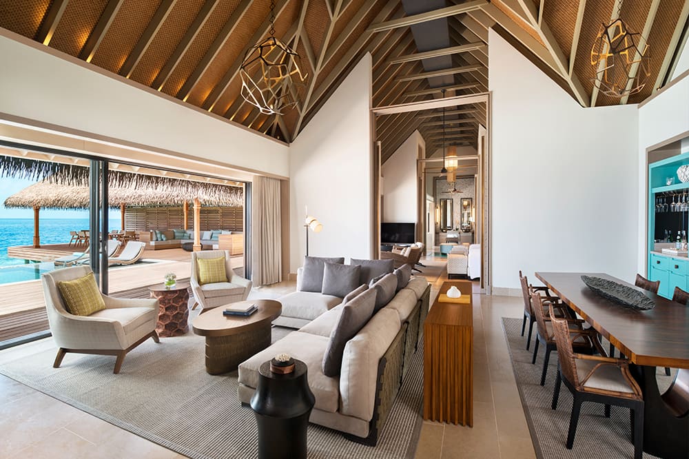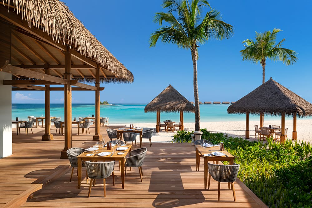 Waldorf Astoria Maldives Ithaafushi запрошує отримати незабутні гастрономічні враження в одному з 11 ресторанів курорту або повечеряти на терасі власної вілли.