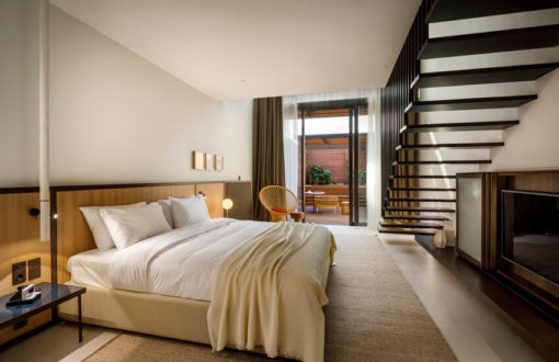 81 кв. метр, розкішні панорамні вікна, що виходять в атріум. На верхньому рівні номера є вхід, гостьовий туалет, lounge-зона і великий обідній стіл. На нижньому рівні розташована спальня, гардеробна площею 9 кв. метрів та ванна кімната площею 13 кв. метрів. Зі спальні можна вийти у відкритий атріум з терасою, садом та приватним басейном. Вхід до всіх номерів Duplex Suites знаходиться на 3 рівні готелю Grand Park Hotel Rovinj. Максимальне розміщення – 3 особи.