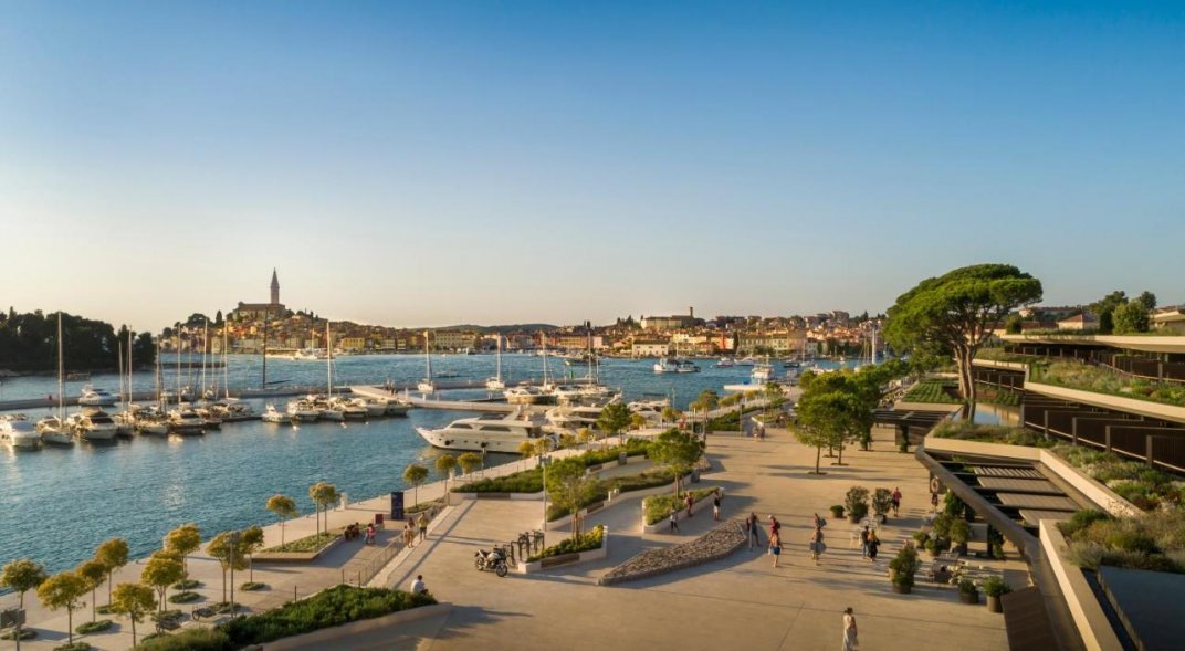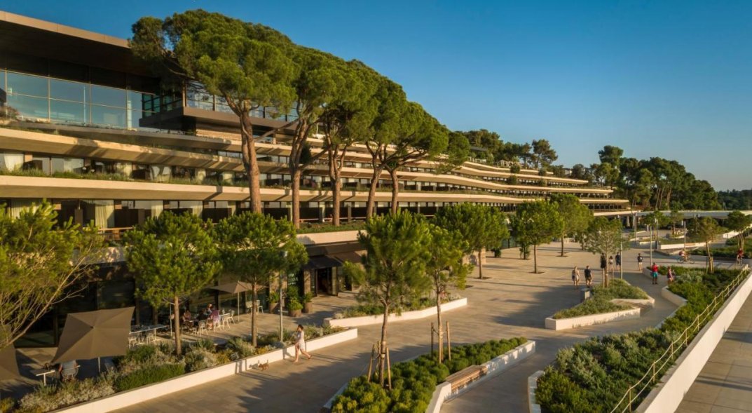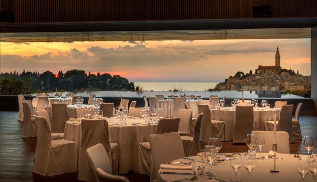 Цей шикарний сучасний готель з видом на мальовничий парк, напоєний ароматом сосен і лаванди, і Старе місто з дзвіницею церкви Св. Єфімії, що височіє над його червоночерепичними дахами, крім чарівного вигляду і прекрасного розташування поряд з пляжем, гаванню і центром Ровіня, пропонує своїм гостям різноманітність першокласних послуг: стильні комфортабельні номери з балконами, ресторани та бари з вишуканою кухнею, розкішний комплекс з трьома басейнами, Spa та фітнес-центрами, дитячий клуб, спорт та розваги на будь-який смак, а також бутіки, конференц-зали та багато іншого.