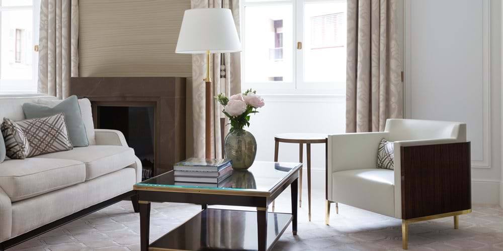 80 кв. м. З спальні, проста вітальня з вогнем і високими стельами, пофарбована люстрою з кристала Баккара, шафа, ванна кімната з видом на озеро і Альпи. панорамний вид на озеро Женева. Номер знаходиться на першому поверсі готелю. Три дорослих.