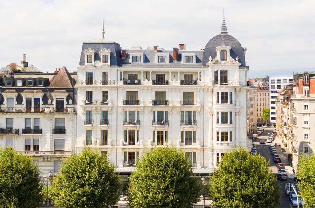 Готель розташований на узбережжі Женевського озера, на початку узбережжя Вільсон, в 5 хвилинах від залізничної станції і 20 хвилин від міжнародного аеропорту.