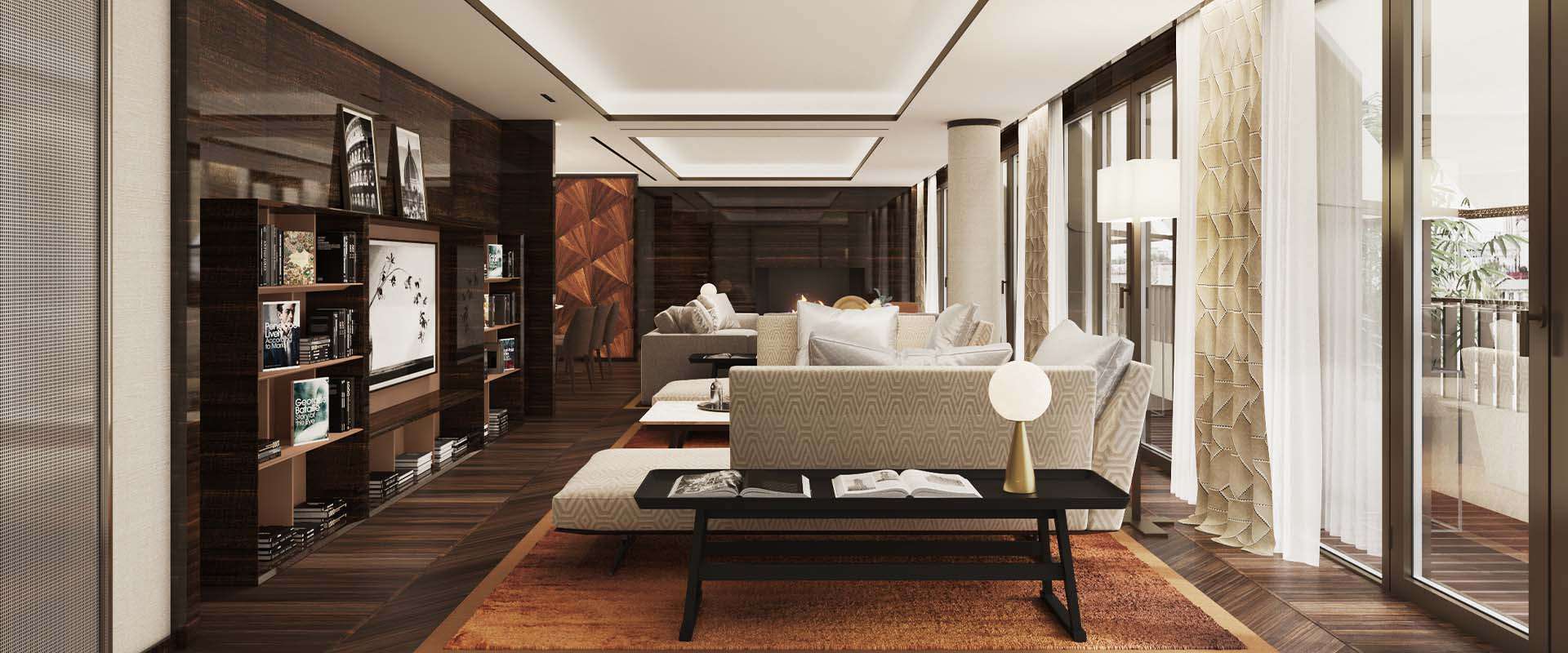 Представницькі люкси площею 91-95 кв.м з терасою або балконом мають гардеробні, обідню зону, вітальню та гостьову ванну кімнату. Надаються послуги дворецького.