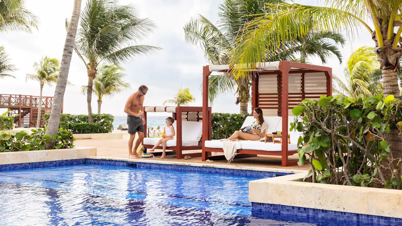 Площа 44 кв. м. Вид на Карибське море. Люкс розташований у будівлі Піраміда з доступом до напівприватного басейну. У люксі: ліжко king size, диван-ліжко розміру queen size, приватний балкон, простора мармурова ванна кімната з душем.