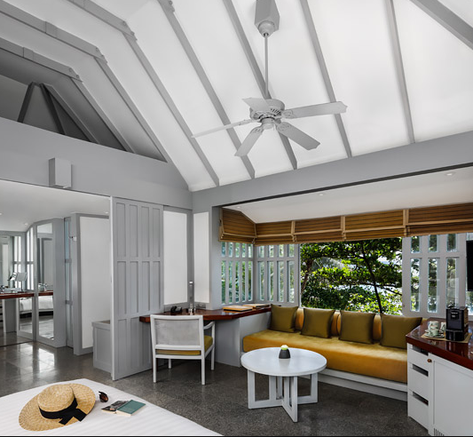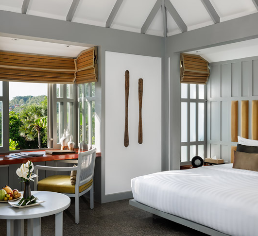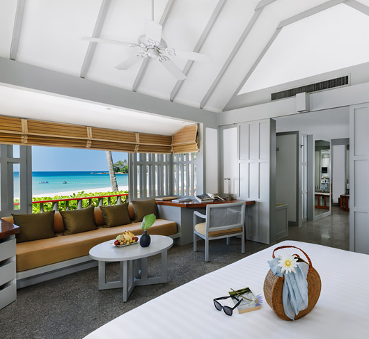 Увійшовши до приватних гостьових зон, які складаються з павільйонів і котеджів, ви побачите, що всі меблі були виготовлені на замовлення та спеціально розроблені, щоб підкреслити характерний острівний стиль Surin Phuket. Гостьові котеджі буквально запрошують навколишню природу всередину через двері зі ставнями, покриті гранітною підлогою та наповнені тканинами земляного кольору. Окрема веранда та відокремлена сонячна тераса створюють для кожного котеджу свій власний райський куточок.