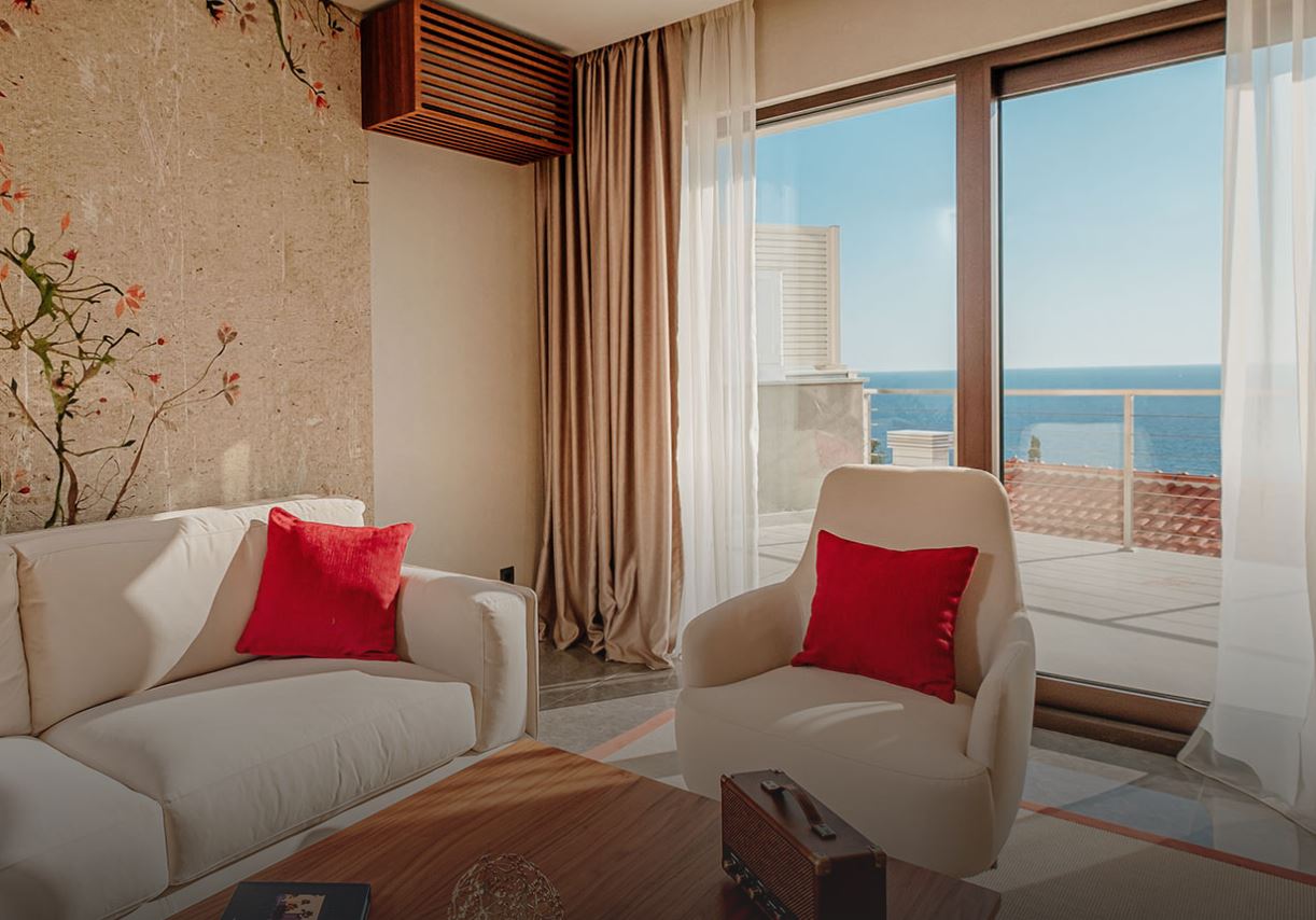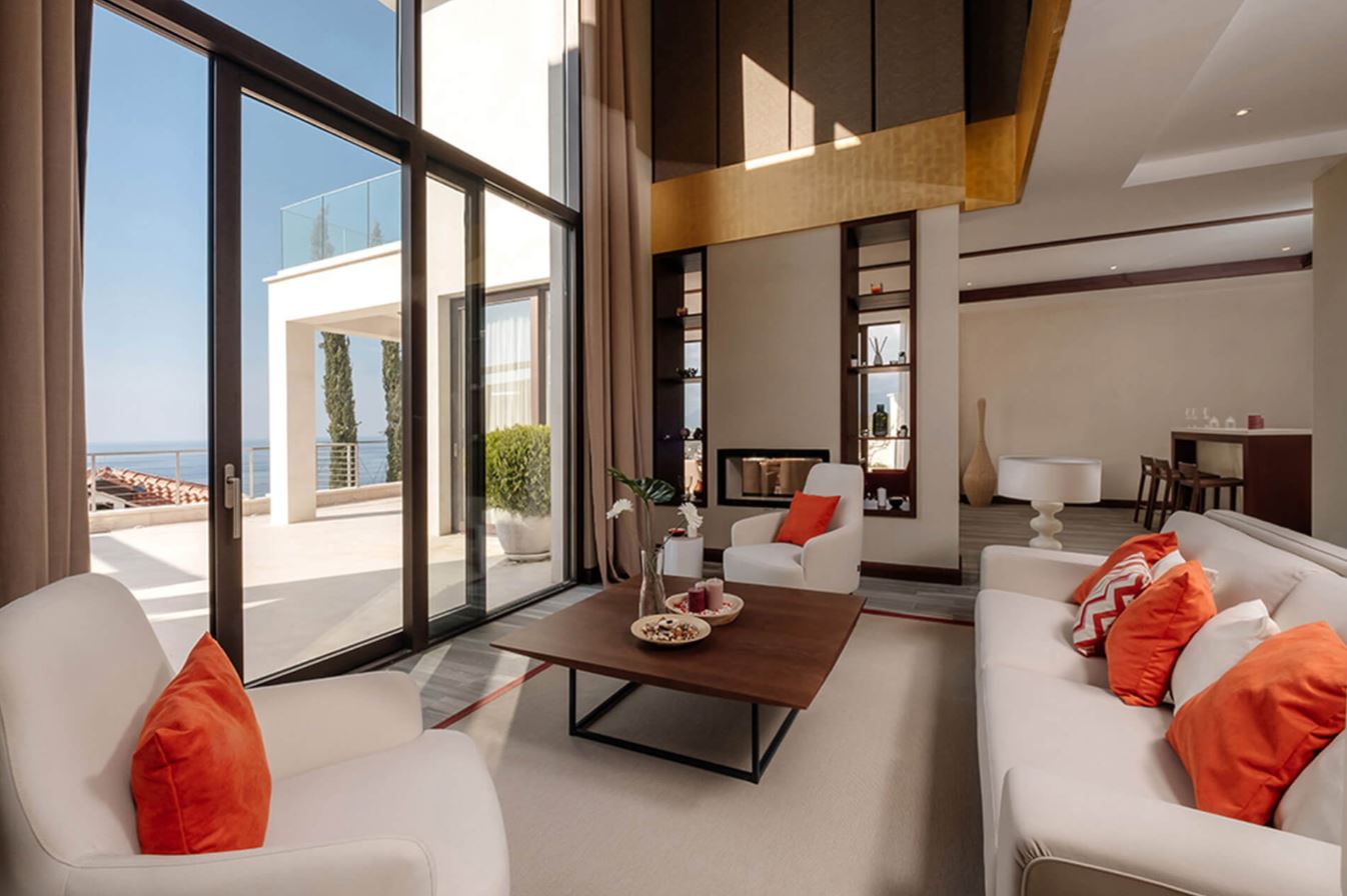 Вибір з чотирнадцяти розкішних люксів, розташованих у двох крилах готелю - Shanti та Ananda - поряд з вісьмома (8) окремими віллами-резиденціями зі стильними інтер'єрами, які поєднують у собі сучасний азіатський та близькосхідний стиль із класичними середземноморськими елементами. Кожна резиденція була спроектована з урахуванням найдрібніших деталей, щоб гарантувати, що всі апартаменти пропонують захоплюючий вид на відкрите Адріатичне море. Кожна резиденція задумана як має сучасне та вишукане планування з панорамним склінням та комфортними функціями, щоб створити заспокійливу атмосферу, що ідеально підходить для відпочинку, релаксації та перепочинку від середини літа. Великі тераси та широкі двері забезпечують велику кількість природного освітлення для чистого та світлого сучасного оздоблення, в той час як захоплюючі види на море завершують зустріч з максимальною розкішшю.