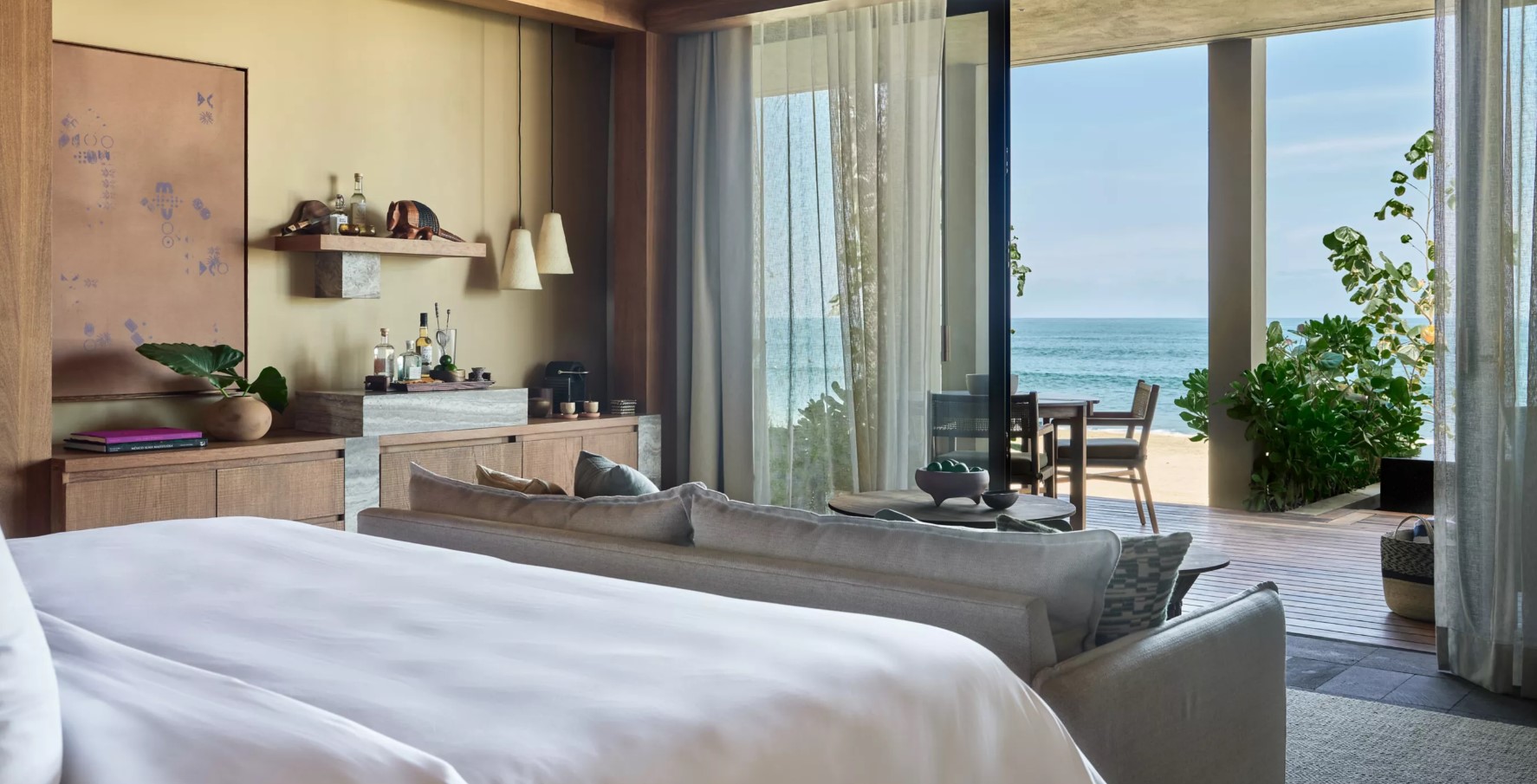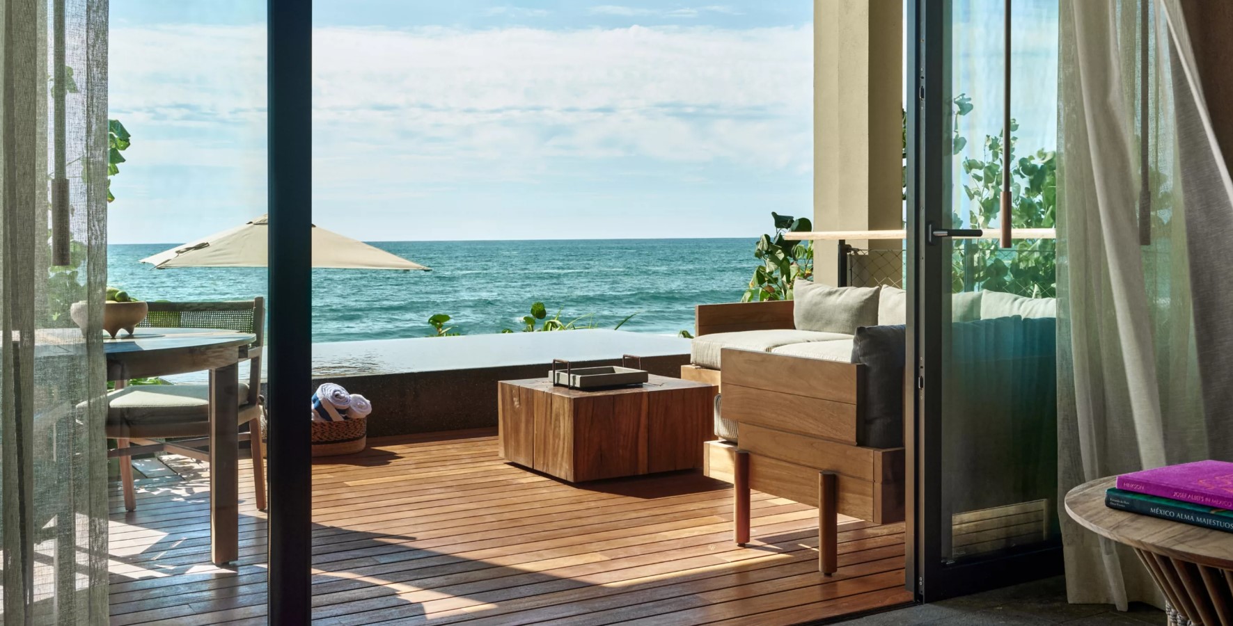 Пляжний павільйон у Rosewood Mandarina — з критими та відкритими зонами та прямим виходом до океану — є центральним місцем курорту для незабутніх зустрічей та чудовим місцем для зміцнення зв'язків між старим та новим.