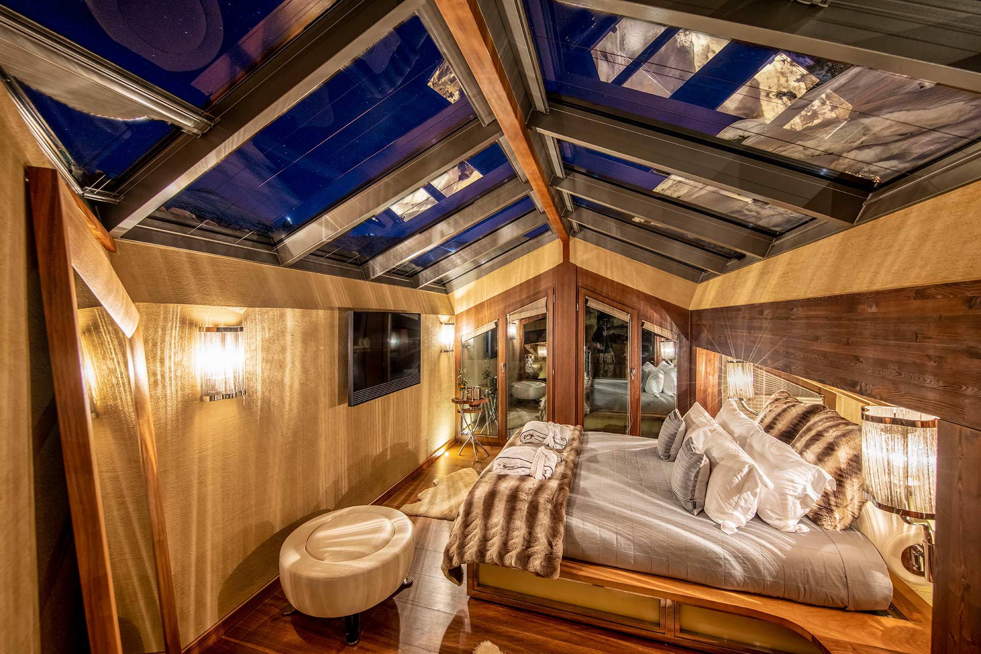 Шале розташовується на шести поверхах і має п'ять розкішних двомісних люксів, по всьому шалі встановлені панорамні вікна, має дах-обсерваторію та джакузі всередині та зовні.