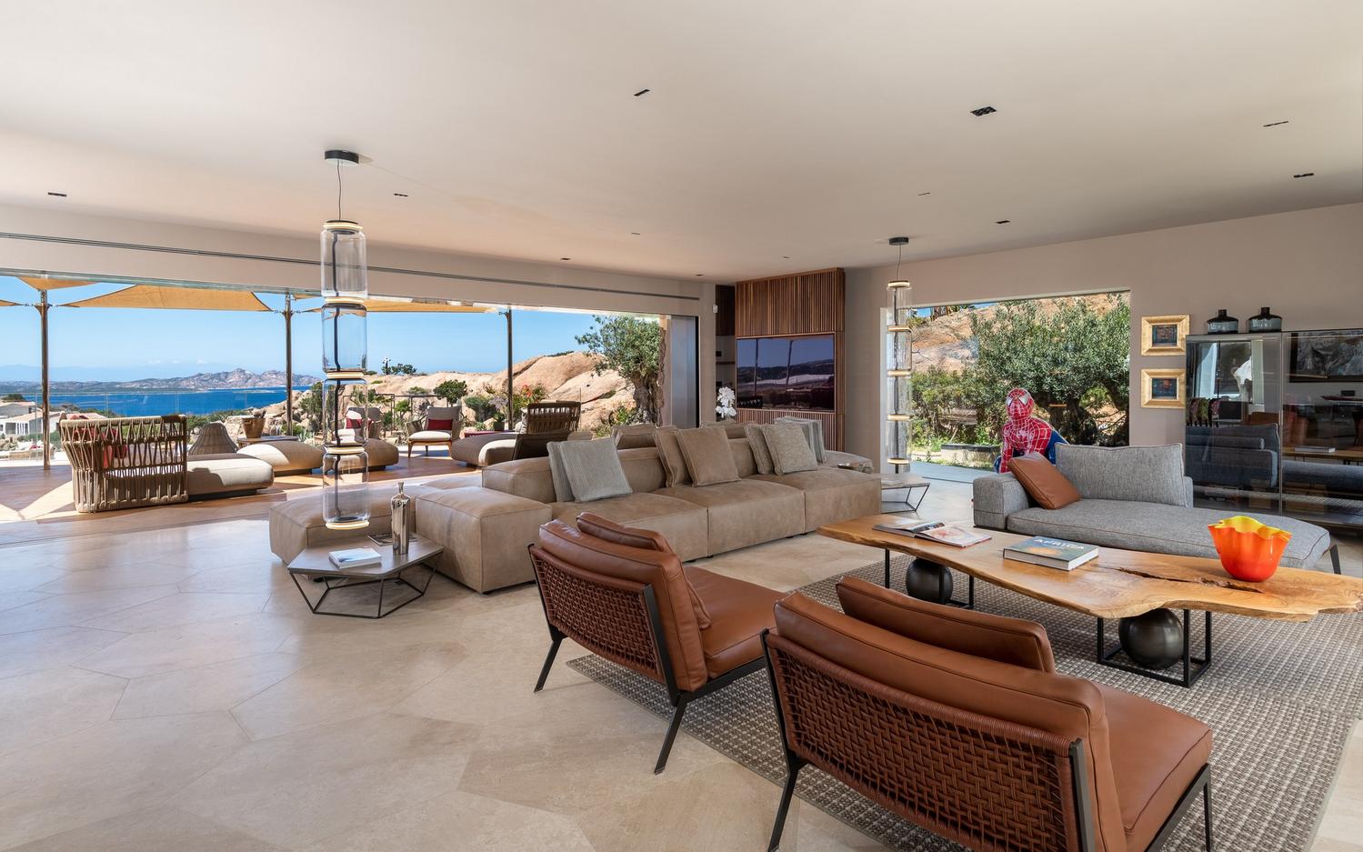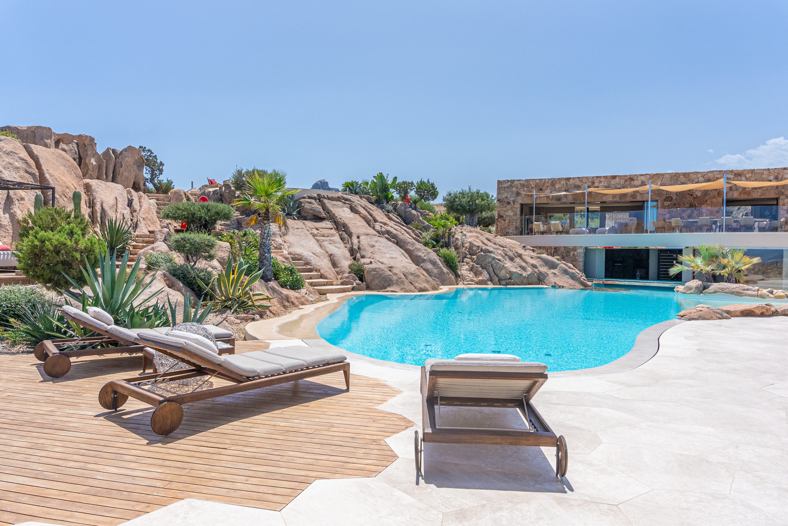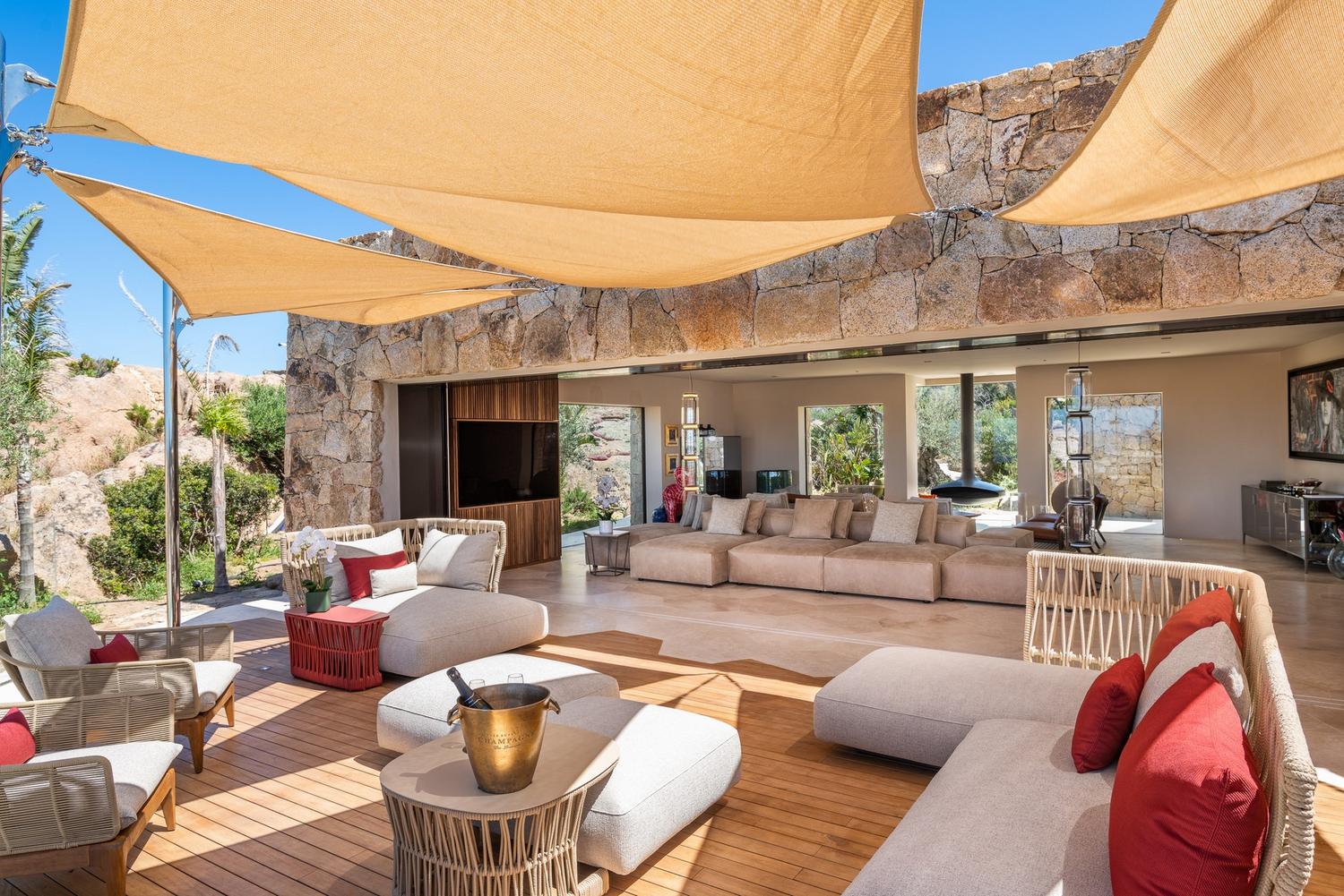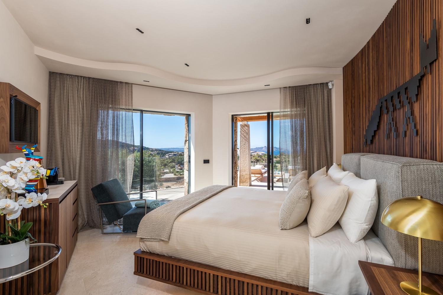 Вілла гармонійно вписується в захоплюючий дух ландшафт Сардинії з гранітними скелями, оливковими гаями та середземноморською зеленню, що пропонує унікальний баланс усамітнення, розкоші та панорамного виду на море.