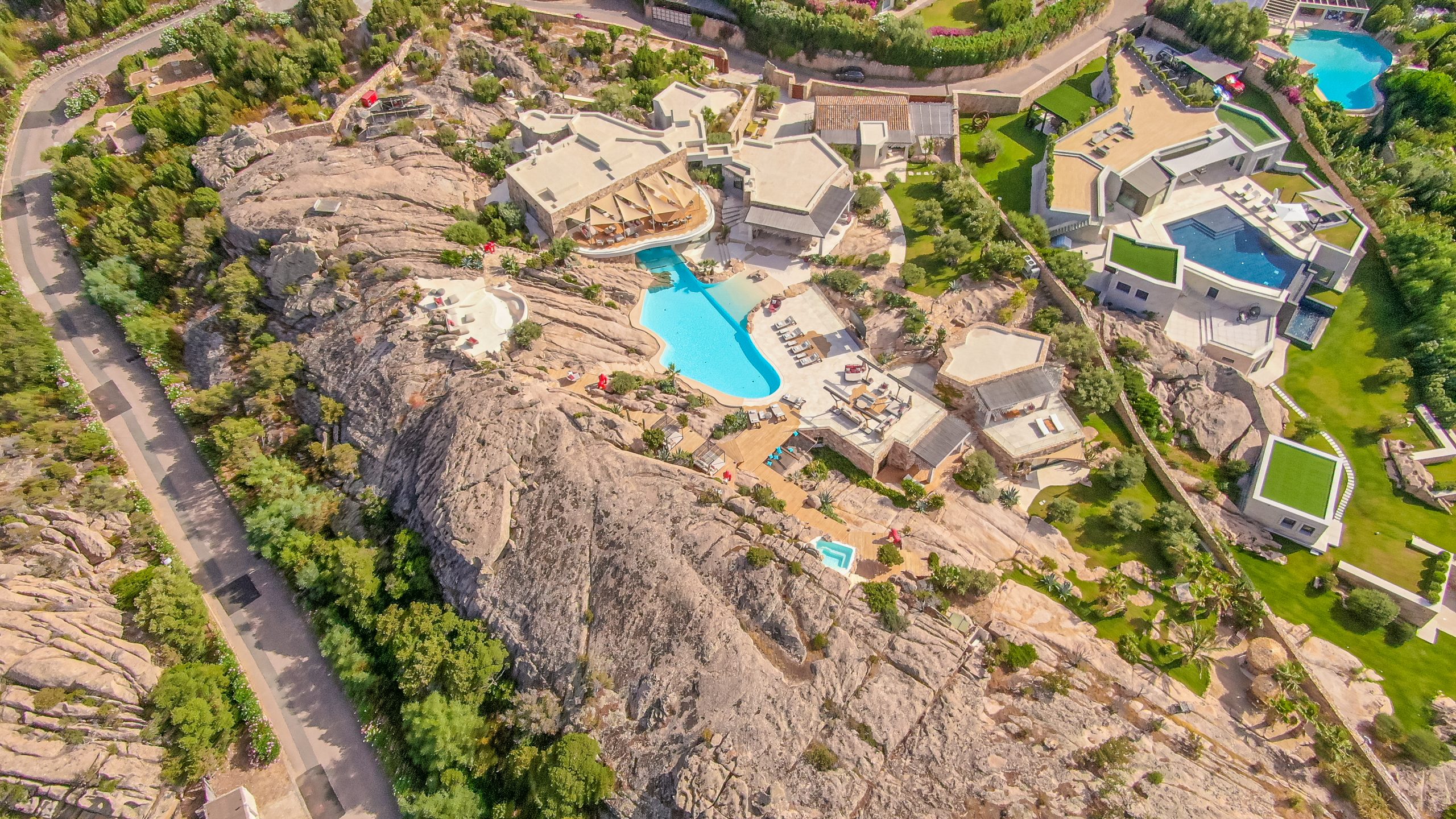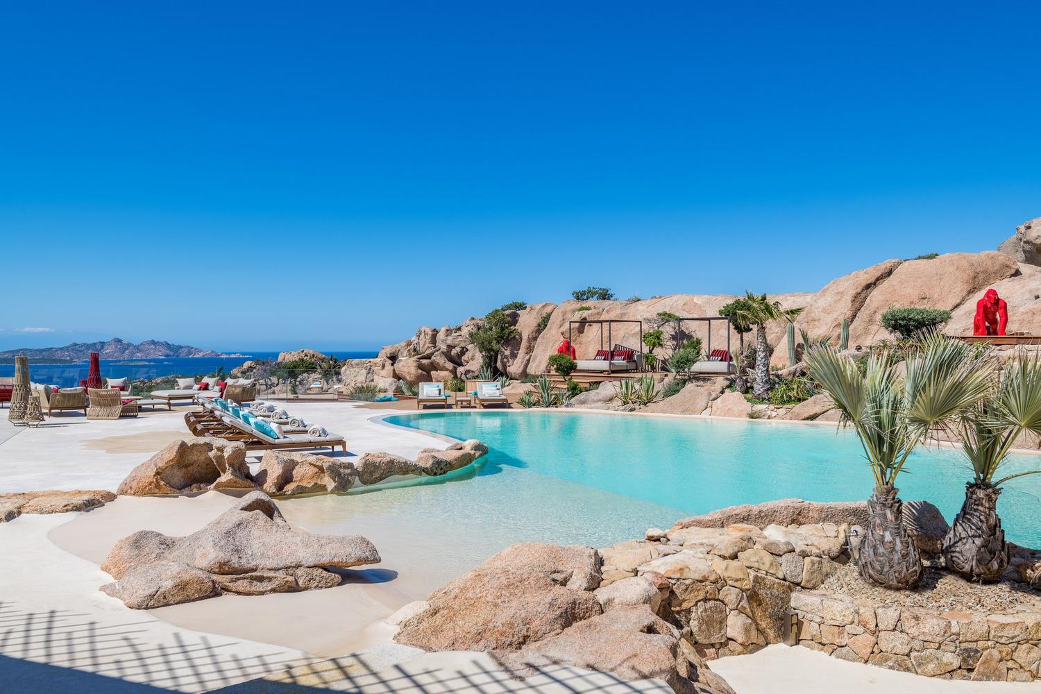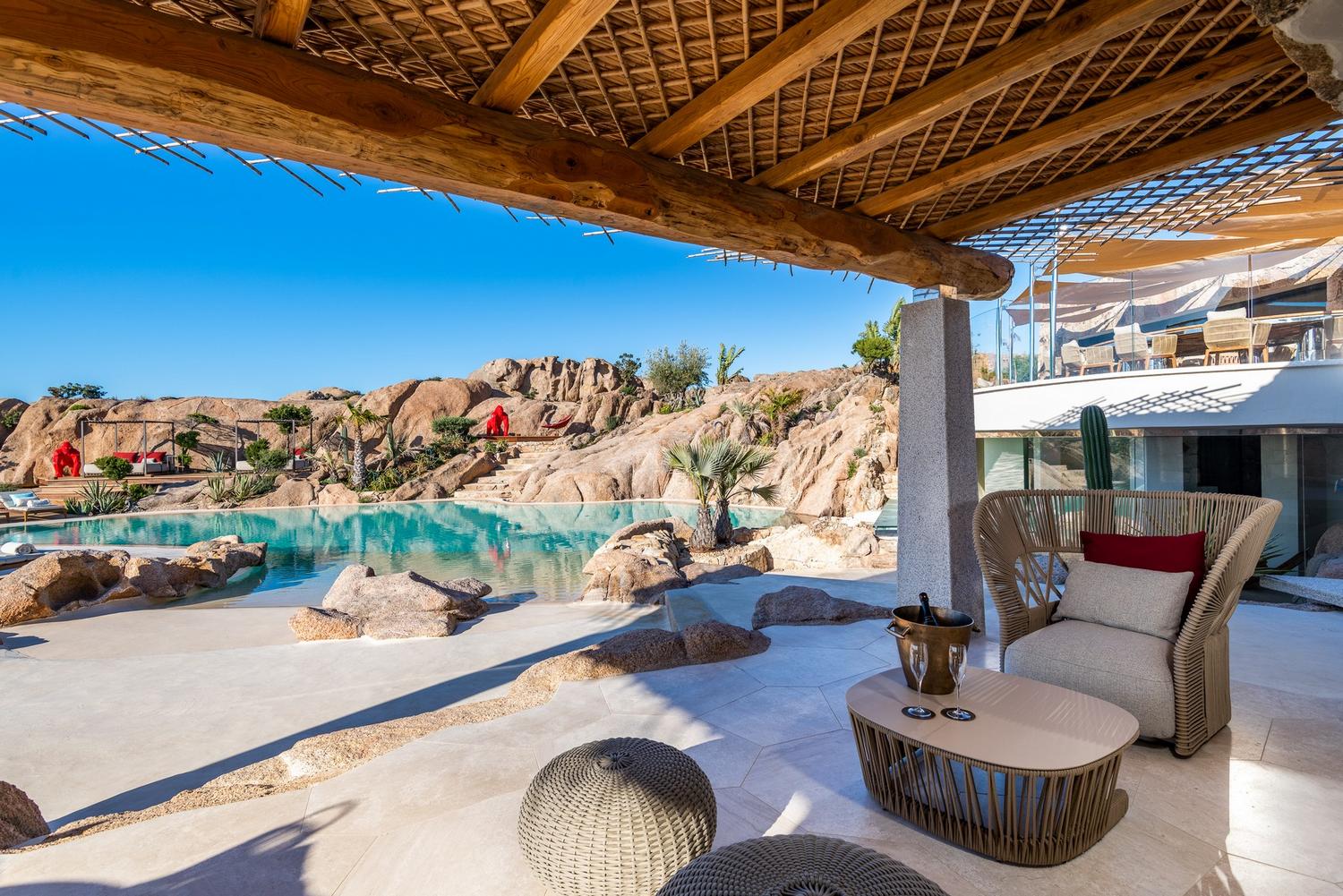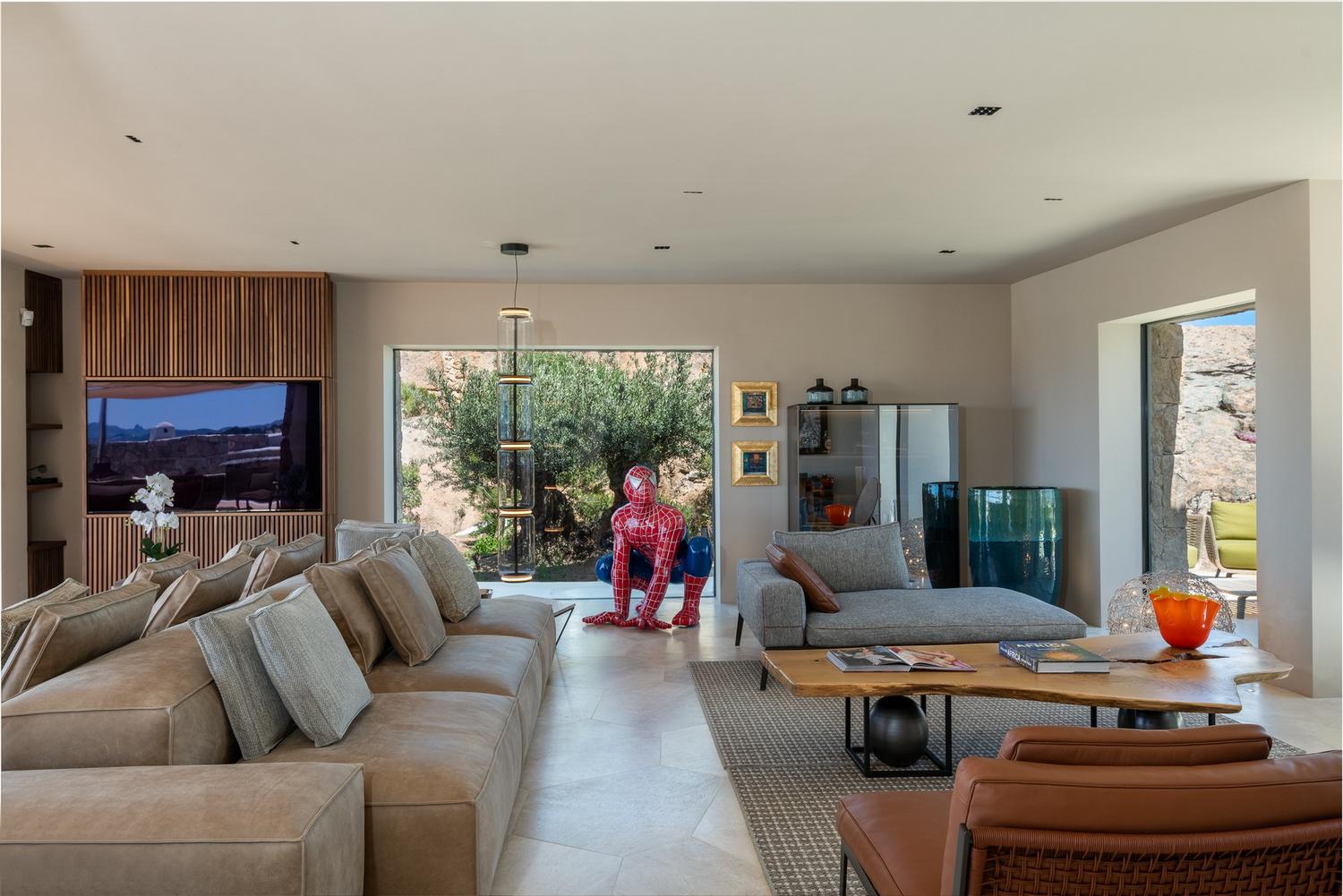 Вілла гармонійно вписується в захоплюючий дух ландшафт Сардинії з гранітними скелями, оливковими гаями та середземноморською зеленню, що пропонує унікальний баланс усамітнення, розкоші та панорамного виду на море.
