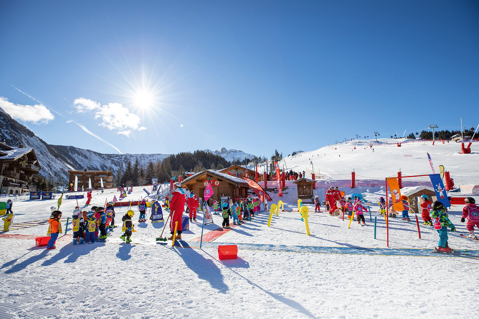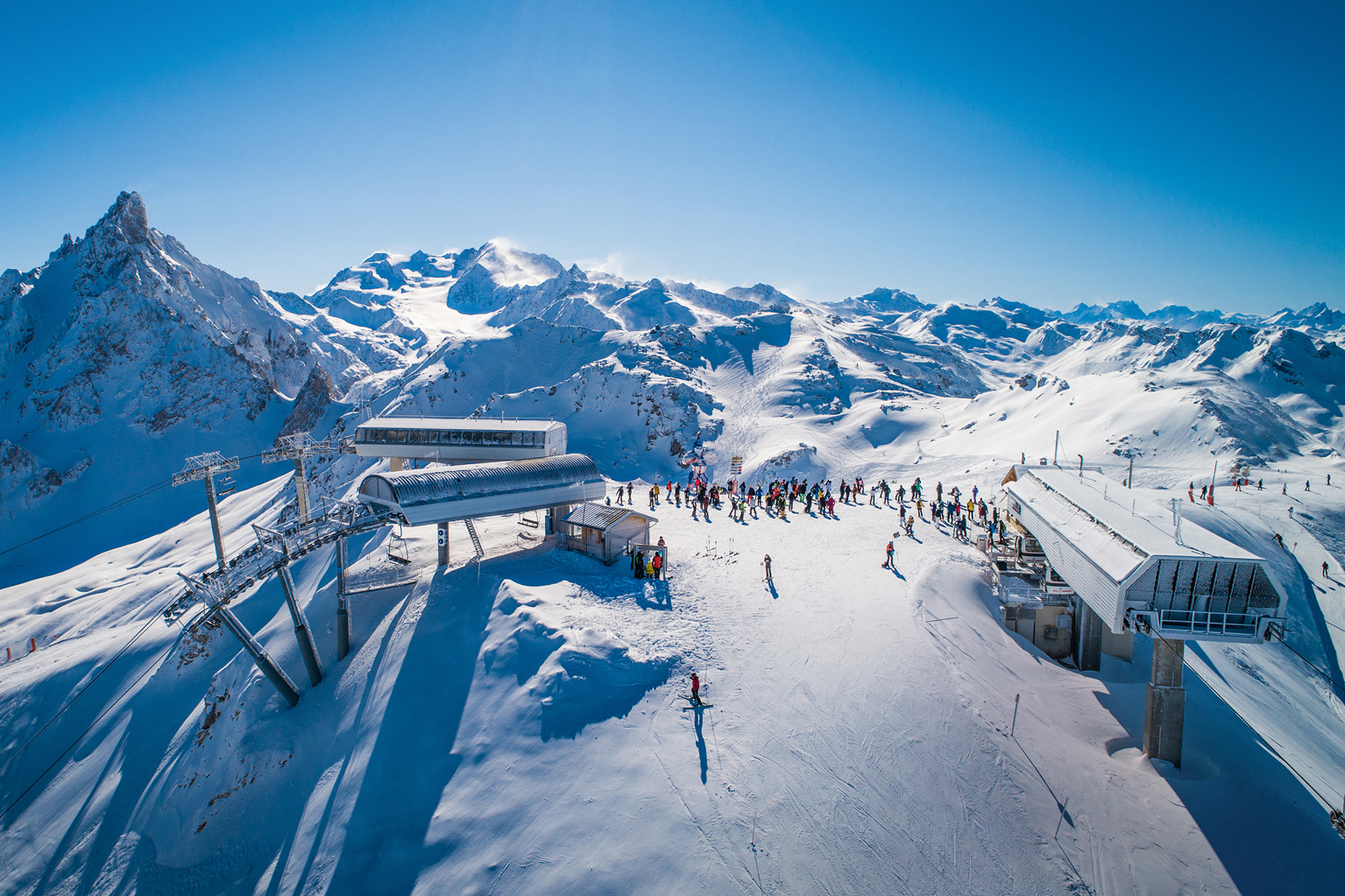 "Три Долини", найбільша зона катання на планеті, об'єднує сім курортів, 600 км бездоганних гірськолижних трас на висоті від 1100 до 3230 метрів, 25 гірських вершин, 158 витягів, необмежений вибір маршрутів, снігові парки і десятки панорамних локацій: від вершини Ле-Сігнал (2250 м) із панорамою Монблану до Сім-де-Карон (3200 м) і Орель (3230 м), звідки видно льодовик Ле-Буше.
