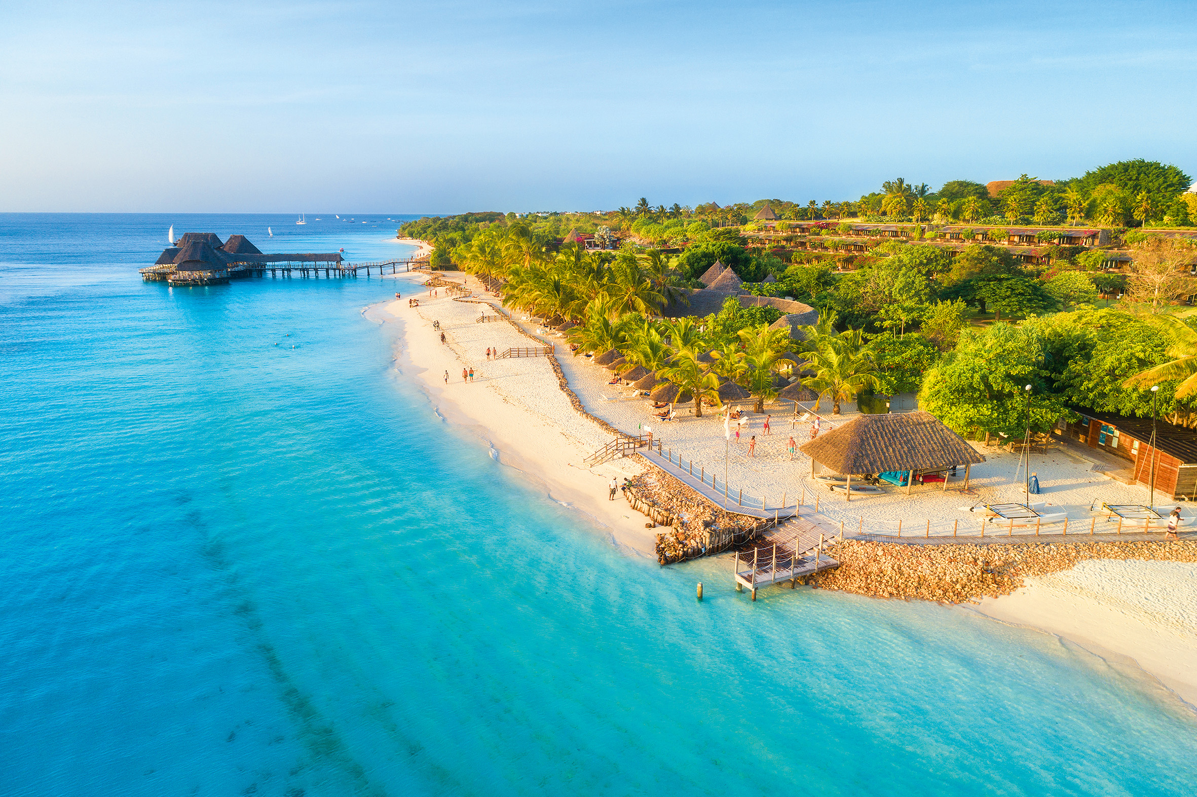 За 35 км від материкової Танзанії розташований архіпелаг Занзібар. Він складається з двох головних островів: Занзібару (Унгуджі) і Пемби - і понад 50 дрібних островів та острівців. На вас чекають ідеальні піщані пляжі, дайвінг до коралових рифів, кайтсерфінг, круїзи на доу (човни будують тут же, в Нунґві), верхова їзда узбережжям, зустрічі з масаї, екскурсії на водоростеві ферми, ресторан The Rock посеред океану, плавання в печерних озерах і уроки гри на барабанах.