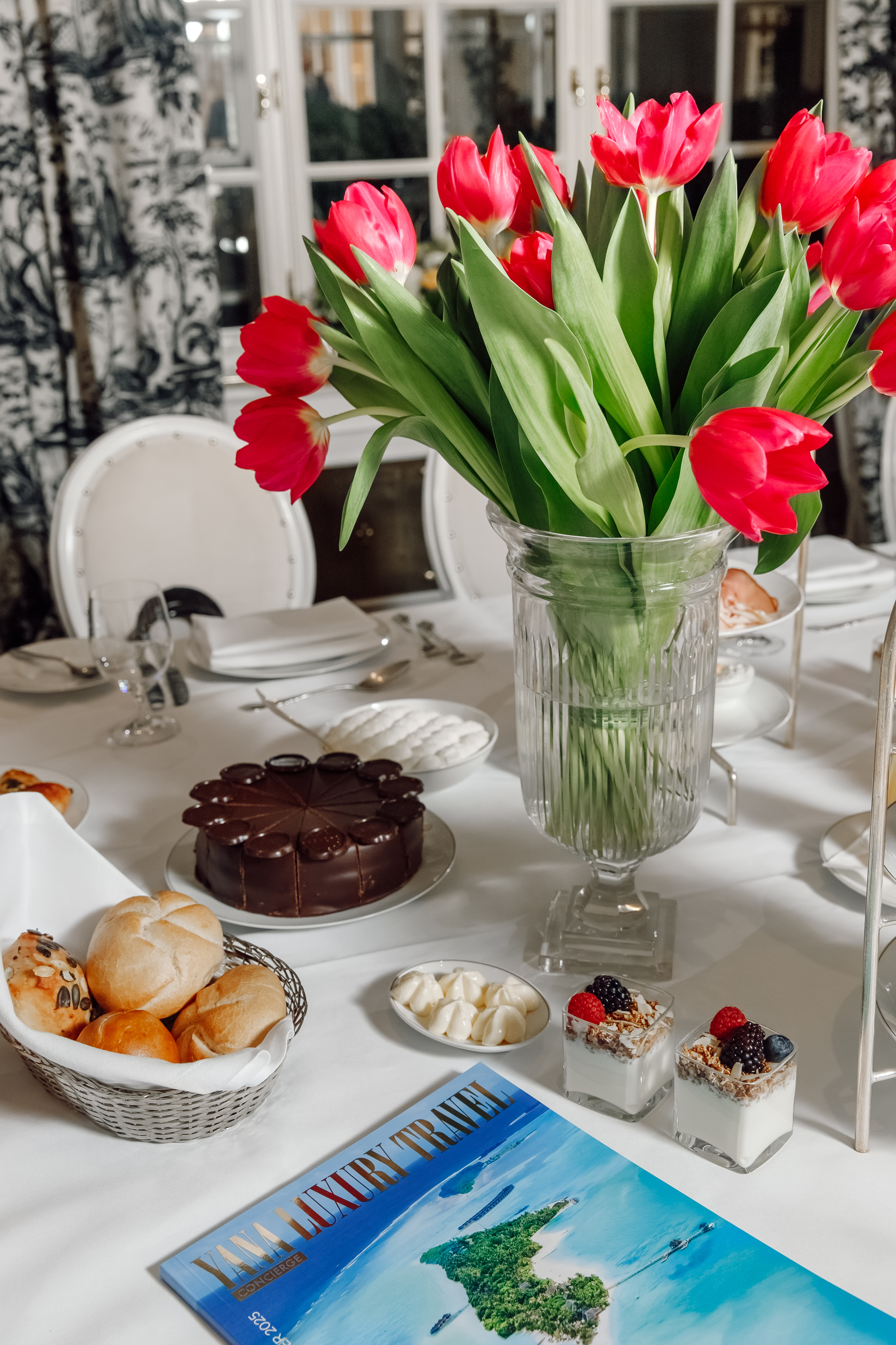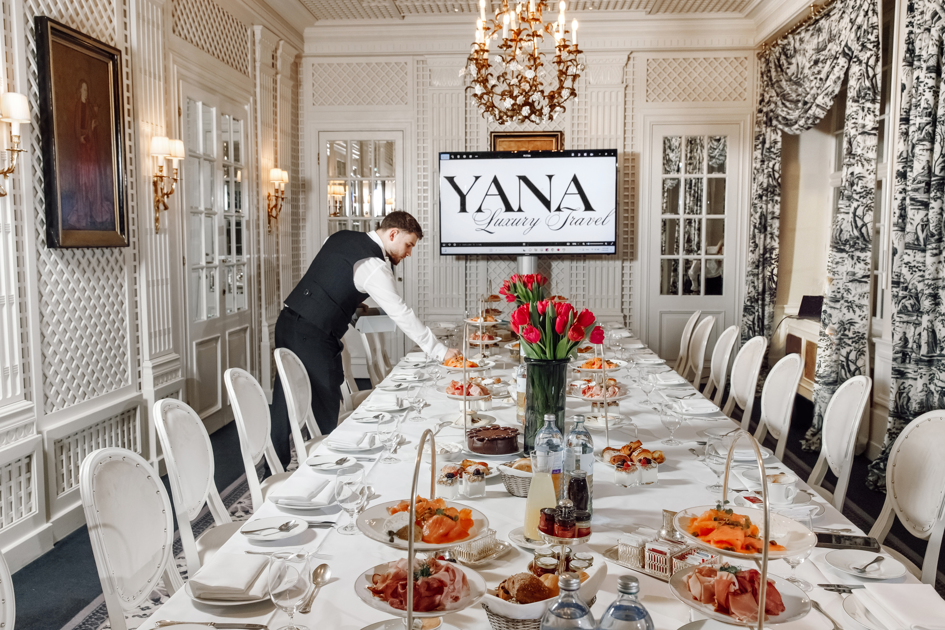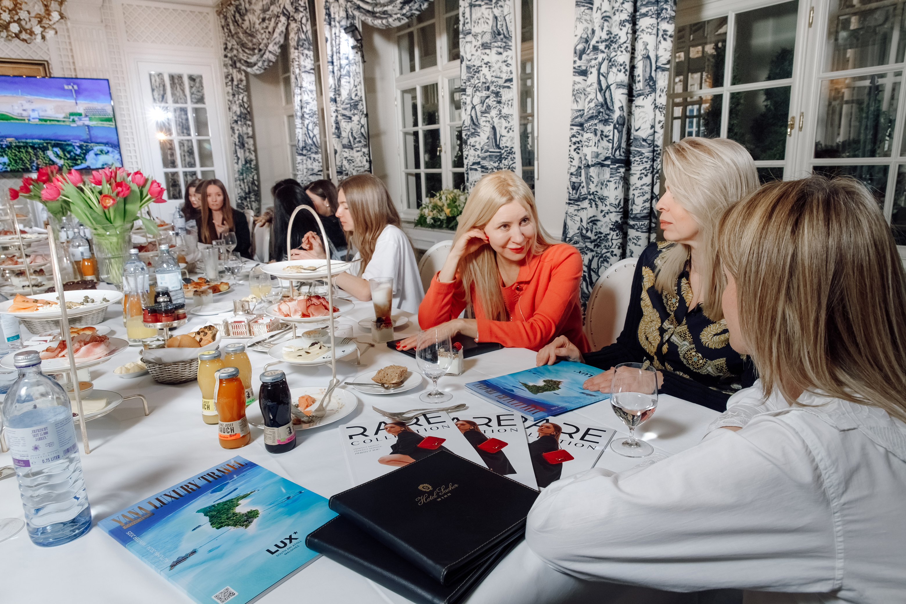 Готель Sacher, відомий своїм аристократичним шармом та багатою історією, став ідеальним місцем для проведення цього сніданку, підкресливши елегантність та високий статус події.