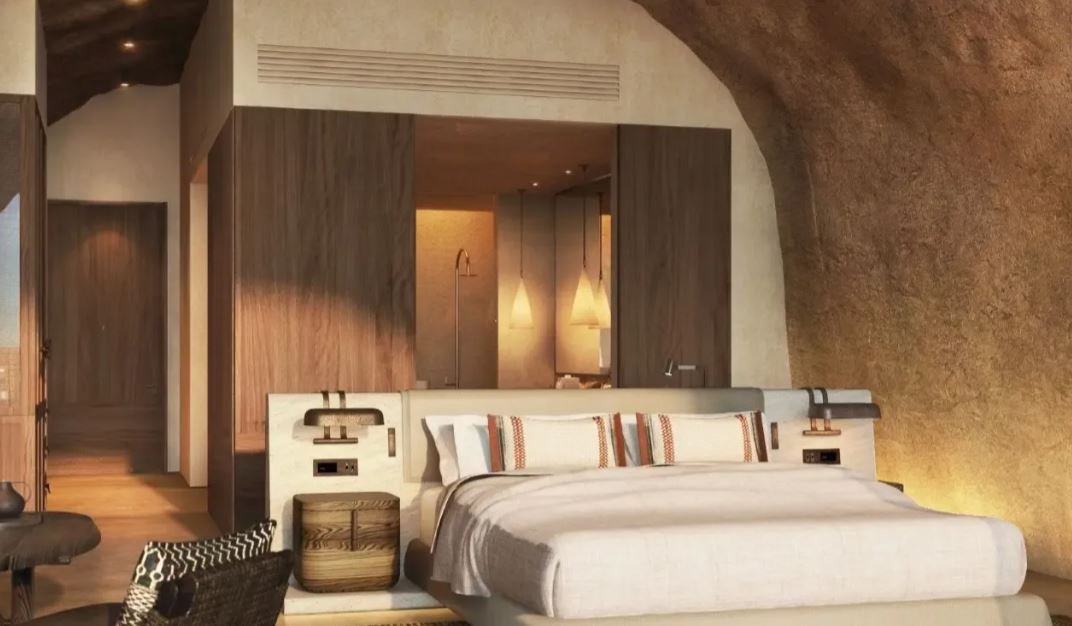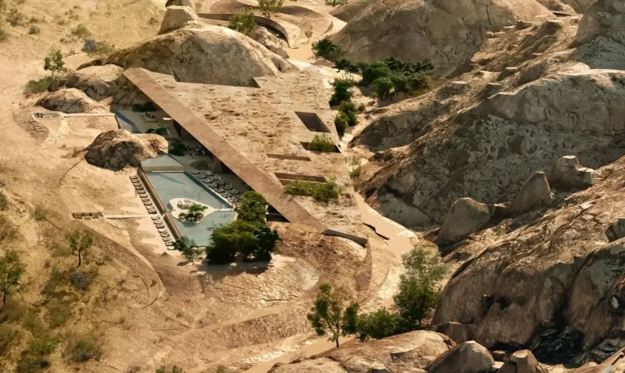 За 20 хвилин від аеропорту розташований сімейний готель Desert Rock Resort – The Red Sea за проектом Oppenheim Architecture – міжнародного бюро з 25-річним досвідом. Його вілли з інтер'єрами в пісочній гамі здаються природним продовженням гірничо-пустельного ландшафту Ель-Хіджаз: вони, подібно до печерних келій, вирізані в скелі, розташовуються в ущелинах, нависають над урвищами або затишно влаштувалися в долині. Кожна вілла простора, панорамна, з власним басейном та батлером. У готелі чотири ресторани та бари, включаючи гастрономічний Nyra під керуванням турецького шеф-кухаря із зіркою “Мішлен” Osman Sezener. Тут застосовують як древні, первісні традиції обсмажування та копчення страв на вогні, і нові техніки, використовуючи продукти місцевого походження. За процесом можна спостерігати на відкритій кухні. Авангардний безалкогольний бар Mica пропонує інноваційні моктейлі та закуски. Для надання незвичайного смаку напоям використовують такі прийоми, як ферментація, консервування, маринування та копчення, подають трав'яні еліксири та закуски. Бар відкритий до першої години ночі, запрошуючи милуватися зоряним небом біля багаття. Головний ресторан Basalt відкритий на сніданки з меню для шанувальників ЗОЖ, місцевої кухні та тих, хто звик ні в чому не відмовляти на відпочинку. Протягом дня тут подають страви сучасної індійської кухні, доповнюючи трапези живими виступами, музичними та танцювальними номерами та феєрверками, що надає атмосфері ефекту театральності. Розташований біля головного басейну Wadi зустрічає страви перуанської кухні під діджейські сети.